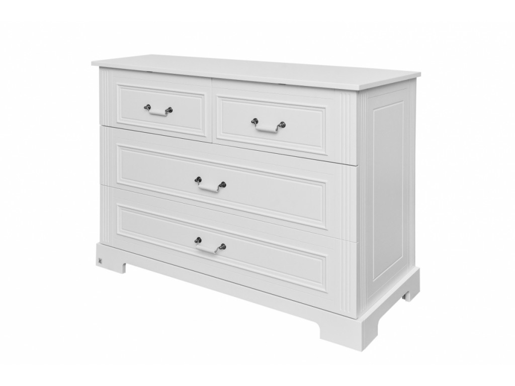 Široká 4-zásuvková komoda (2 + 1/2 + 1/2) z obľúbenej kolekcie Ines dopĺňa ponuku detského nábytku určeného pre staršie deti. Komoda Ines je vizuálne ladená do klasického štýlu. Je teda plná elegancie, ale komoda nezabúda ani na praktickú stránku veci a ide ruka v ruke s maximálnou funkčnosťou. Ideálne sa hodí do detskej izby, no uplatniť sa dokáže aj v izbe dospelých súrodencov alebo v spálni rodičov.