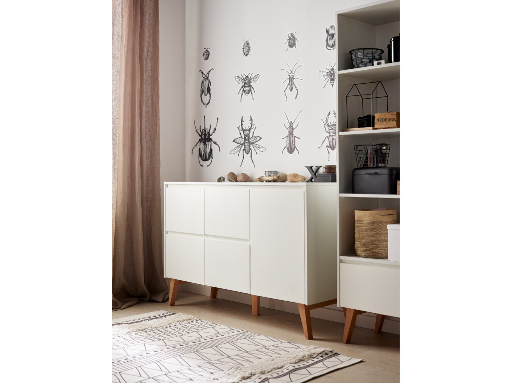 Detská komoda na nožičkách z kolekcie Swing dodá detskej izbe ten správny štýl. Komody sú nepostrádateľnou súčasťou detskej izby. Swing so 4 zásuvkami a dvierkami, nezaberie veľa miesta a disponuje veľkým úložným priestorom.
