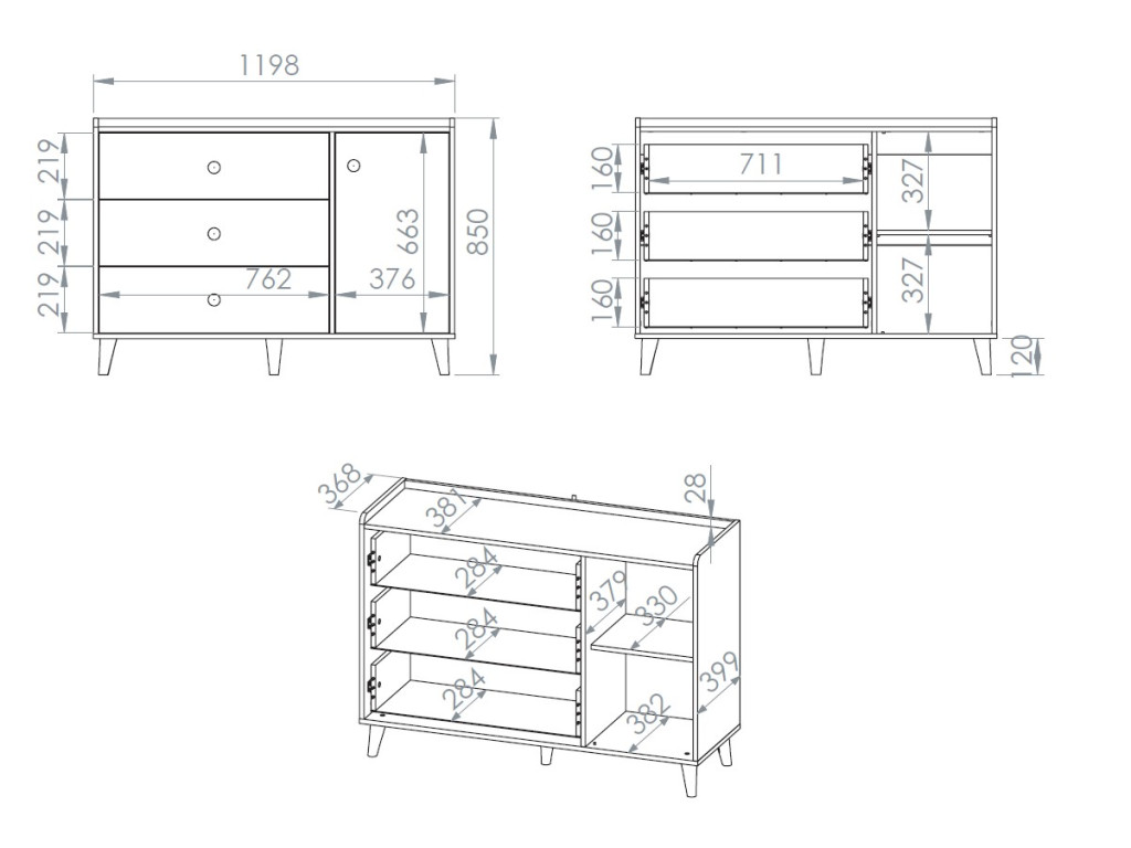 Široká komoda Mevel 05 je navrhnutá pre všetkých, ktorí túžia po praktickom úložnom priestore bez kompromisov v dizajne. Tri zásuvky s plným výsuvom a jedny dvierka ponúkajú dostatok miesta na oblečenie, hračky či iné potreby, pričom vnútorné usporiadanie pomôže udržať poriadok. Kombinácia béžového korpusu a jemných sivých frontov s matným efektom vytvára nežný a pôvabný vzhľad, ktorý skvelo ladí s ostatnými prvkami kolekcie Mevel.