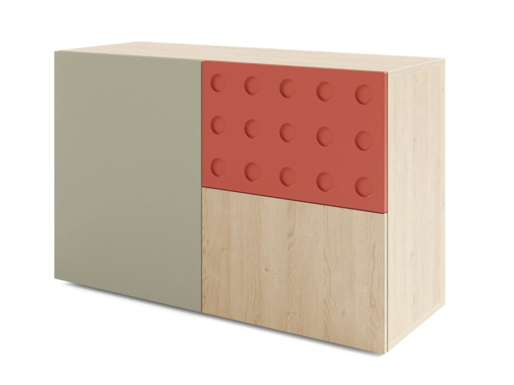 Široká komoda Salsa SL9- dub piškótový / zelená / oranžová