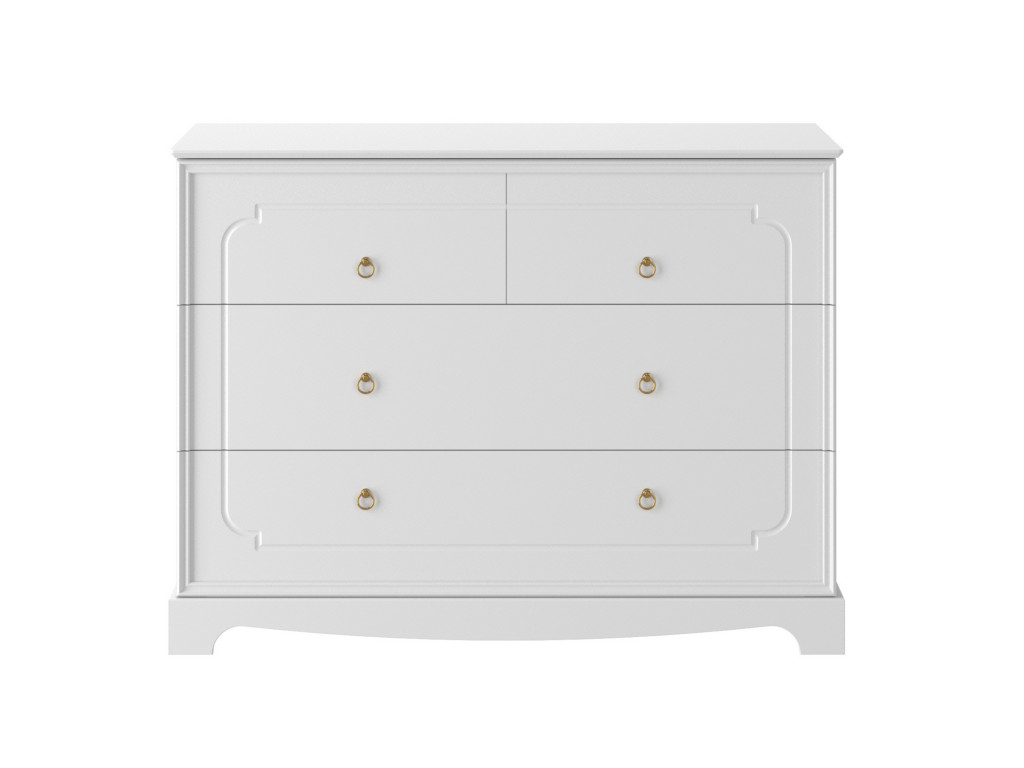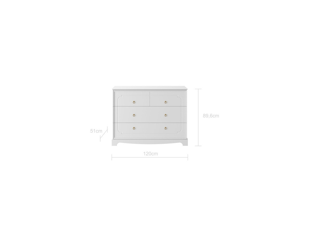 Komoda Royal so štyrmi zásuvkami spája klasickú estetiku s praktickým riešením úložného priestoru. Je navrhnutá tak, aby spĺňala potreby detí aj rodičov – prehľadná organizácia, ergonomické riešenie úchytiek a nadčasový dizajn ju robia skvelou voľbou do každej detskej izby. Vďaka elegantným detailom vynikne aj v spoločnej izbe súrodencov či v spálni, kde vytvorí harmonický a funkčný priestor.