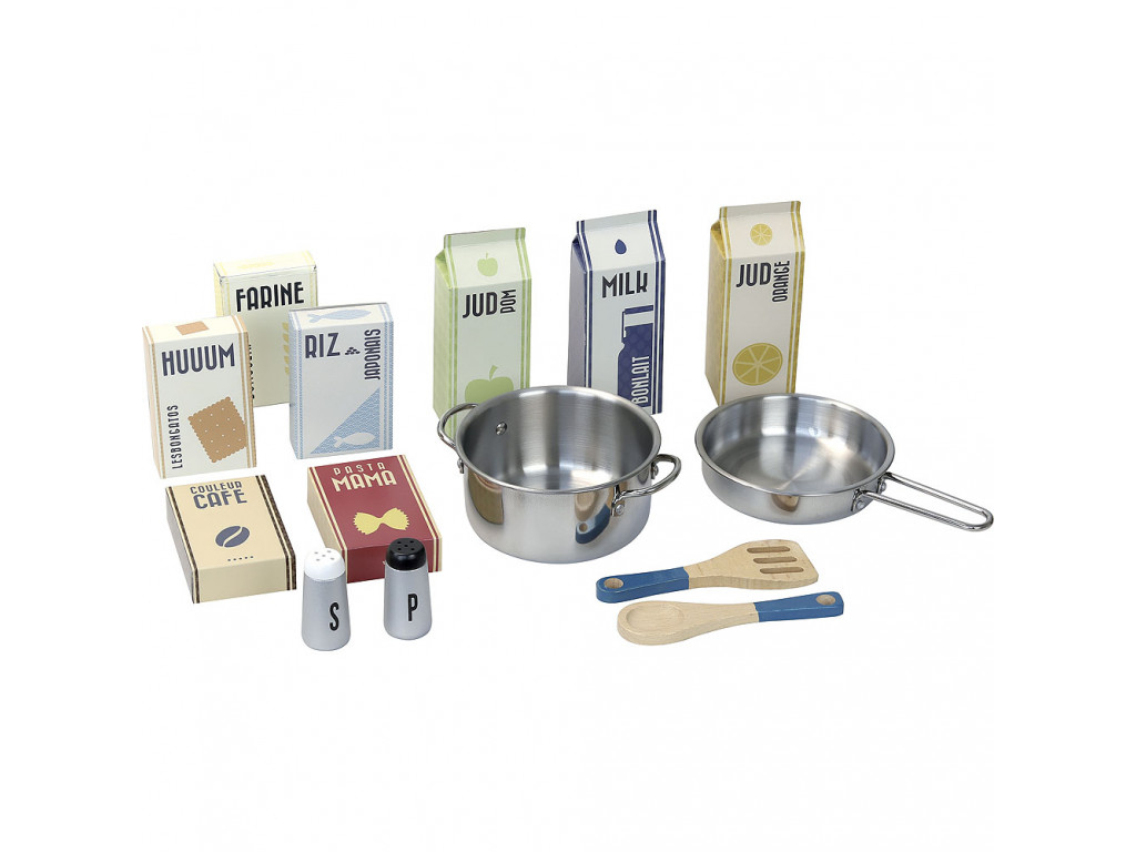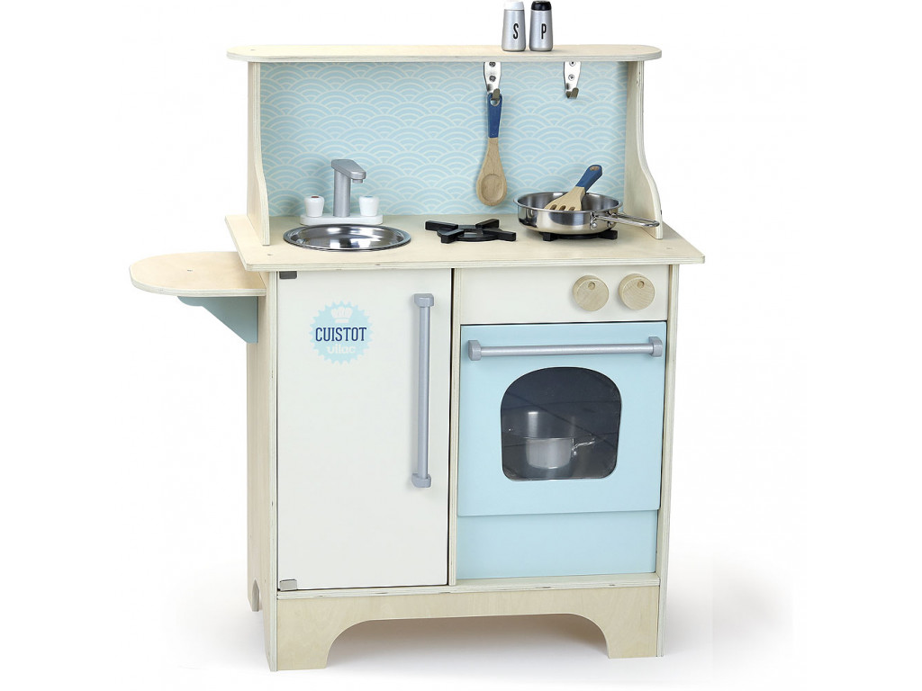 Ak máte doma nadšených pomocníkov, určite sa im bude páčiť táto kuchynka v modrej farbe. Možno sa vďaka tejto hračke deti v budúcnosti stanú špičkovými kuchármi a kuchárkami. V balení okrem čiapky a zástery šéfkuchára nájdete aj soľničku a koreničku, varešku, hrniec, panvicu a 8 tetrapakov s potravinami. Kuchynka má samozrejme drez, rúru, sporák s klikajúcimi ciferníkmi a mnoho úložného priestoru. Po rozbalení nutné zložiť. Vhodné od 3 rokov.