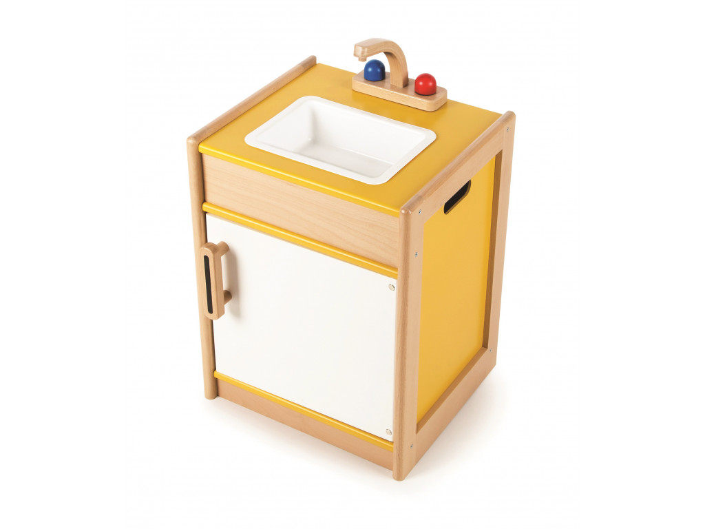 Žiadna kuchyňa nie je kompletna bez drezu, kde by sa dal umyť všetok špinavý riad. Tento drevený drez obsahuje kohútik, otvárateľné predné dvere a úložné miesto pod drezom, kde deti môžu uložiť hubky, saponáty a iné veci, ktoré potrebuje každá kuchyňa. Zároveň je možné vybrať plastové umývadlo a zľahka ho umyť! Skvelý spôsob ako deti naučiť, že po jedle je dôležité po sebe upratať. Na boku má rukoväte na ľahšie uchopenie. Podporuje kreatívnu a predstavivú hru. Kombinujte s ostatnými Tidlo kuchynskými spotrebičmi a iným príslušenstvom a vytvorte hravú kuchyňu! Po vybalení je nutné zložiť. Vyrobené z kvalitných materiálov zo zodpovedných zdrojov. Zodpovedá európskej bezpečnostnej norme.