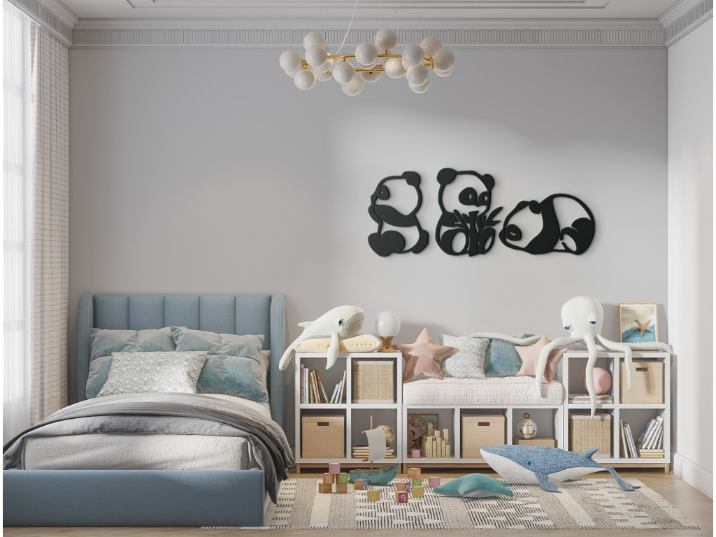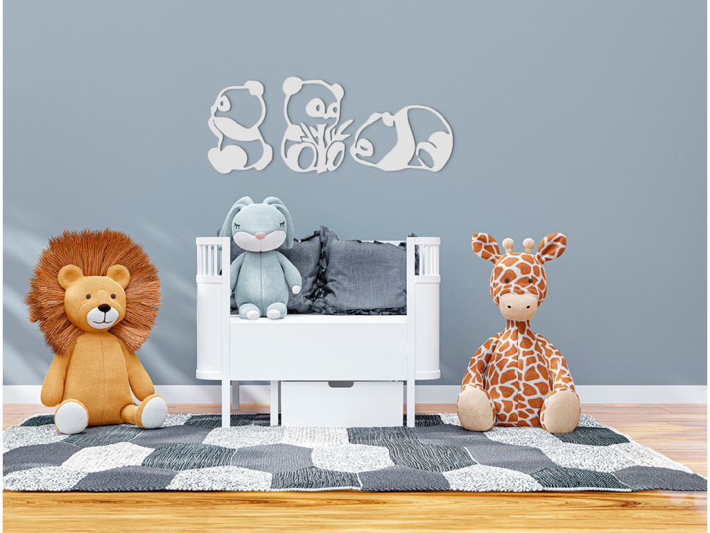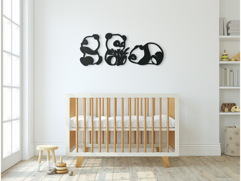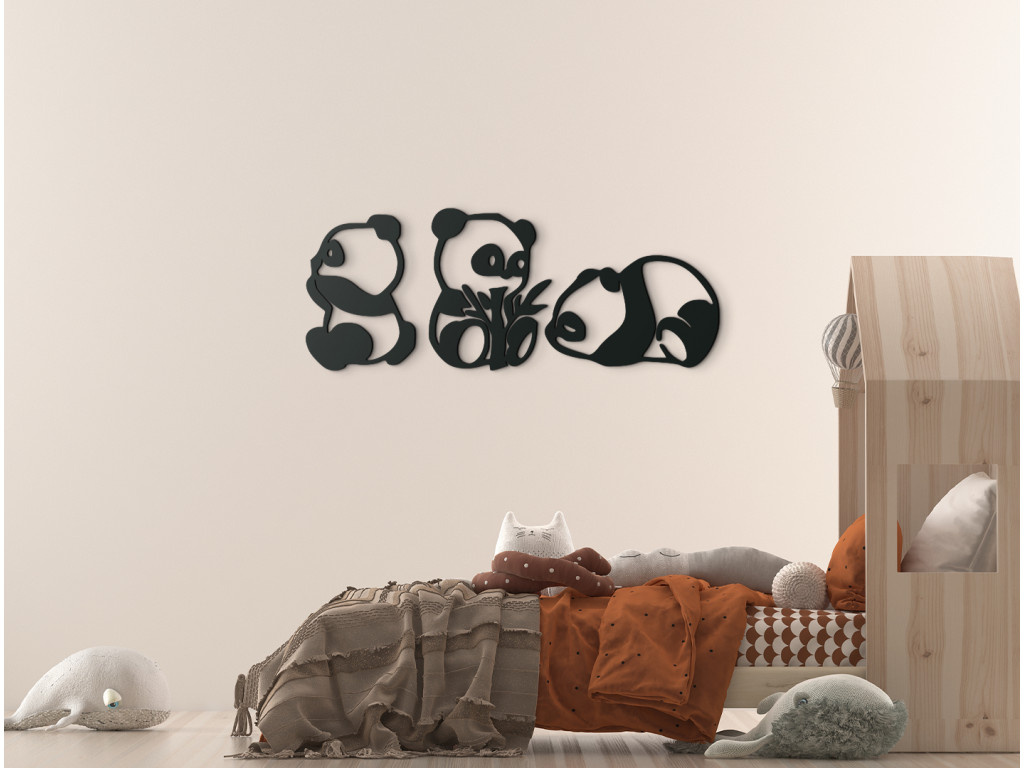Detská izba by mala pôsobiť hravým a veselým dojmom a presne tak vyzerá aj táto drevená nálepka na stenu. Znázorňuje tri roztomilé pandy, ktoré spolu oddychujú. Nálepky je vhodné nalepiť spolu, avšak dobre budú vyzerať aj samostatne podľa uváženia.