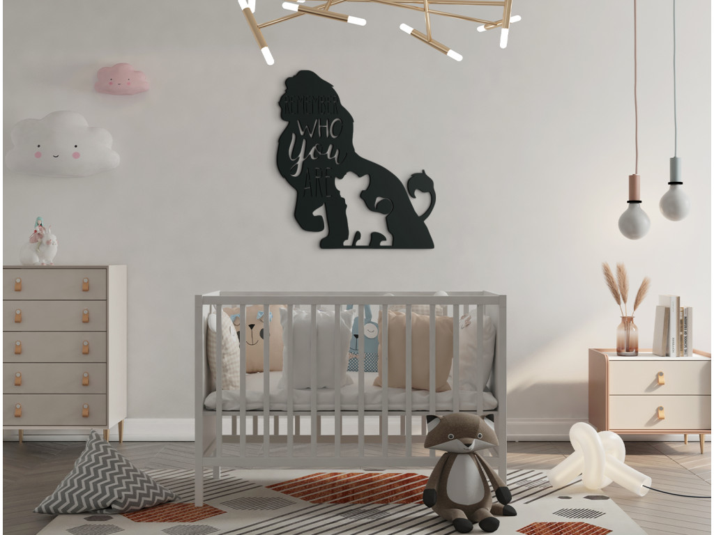 Drevená nálepka Leví kráľ zaiste poteší všetky deti, ktoré zbožňujú túto rozprávku. Leví kráľ bude v detskej izbe pôsobiť hravo a celý interiér rozžiari. V nálepke sa nachádza text piesne z tejto rozprávky "Remember who you are."
