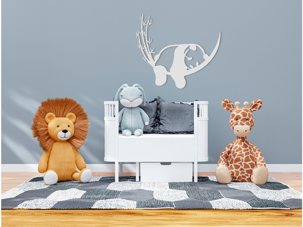 Dekorácia na stenu detskej izby s motívom driemajúcej pandy pôsobí upokojujúcim a relaxačným dojmom. Zobrazuje spiacu pandu, ktorá odpočíva na bambusovom konári a labky jej pritom uvoľnene visia nadol. Skrátka dokonalý obraz pohody a oddychu.