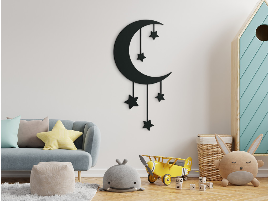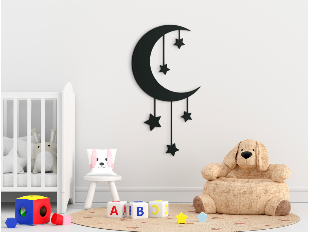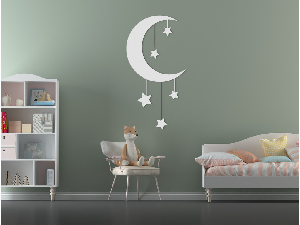 Detská izba je miestom kde dieťa trávi veľa času. Mesiačik s hviezdičkami je vhodnou nálepkou do každej modernej detskej izby. Umiestnite ho nad detskú postieľku, prebaľovací pult či detský stolík, aby vášho drobčeka potešila, kedykoľvek sa na ňu pozrie.