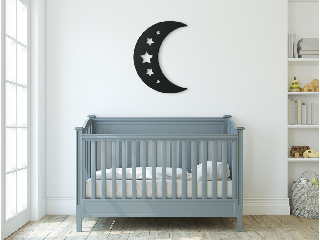 Mesiačik s hviezdičkami je vhodnou nálepkou do každej modernej detskej izby. Umiestnite ho nad detskú postieľku, prebaľovací pult či detský stolík, aby vášho drobčeka potešila, kedykoľvek sa na ňu pozrie.