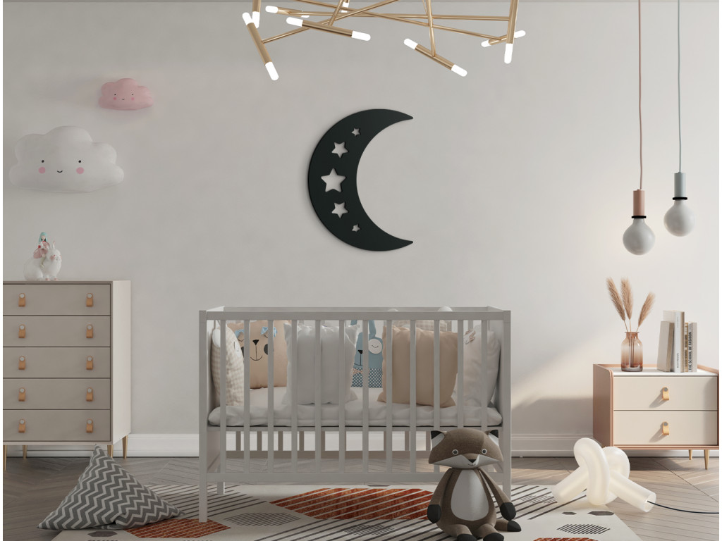 Drevená dekorácia na stenu s motívom mesiačika pôsobí hravým a zároveň upokojujúcim dojmom. Moderný minimalistický dizajn je ideálny do štýlových detských izbičiek, kde bude výborne ladiť s celkovým vybavením.
