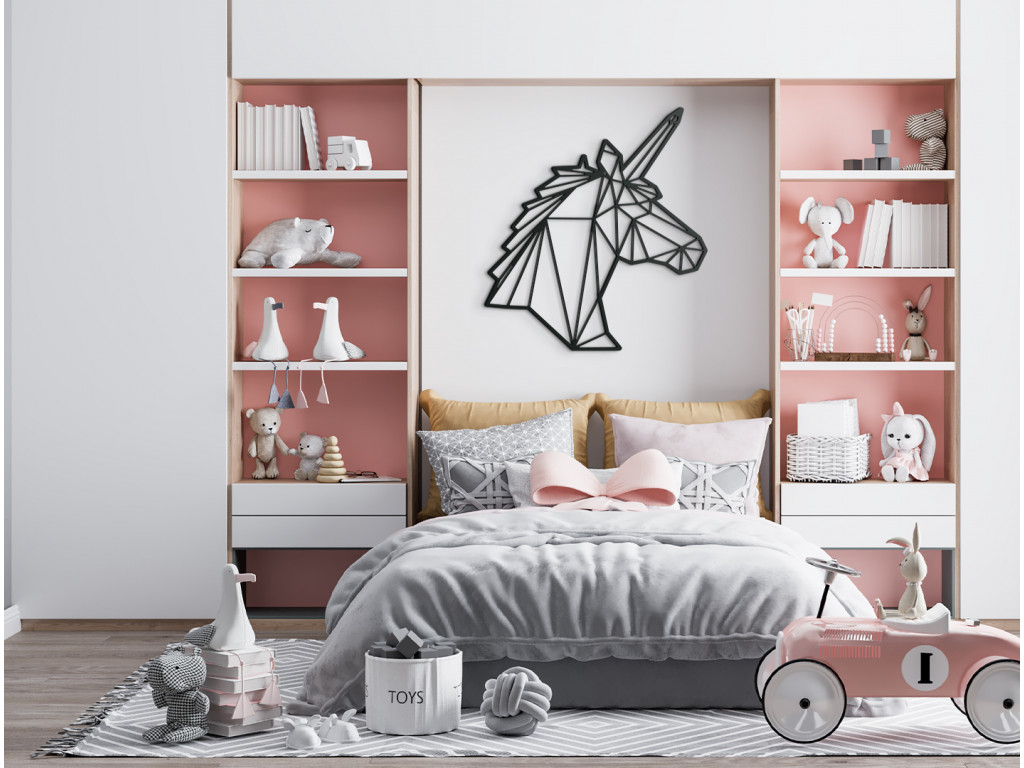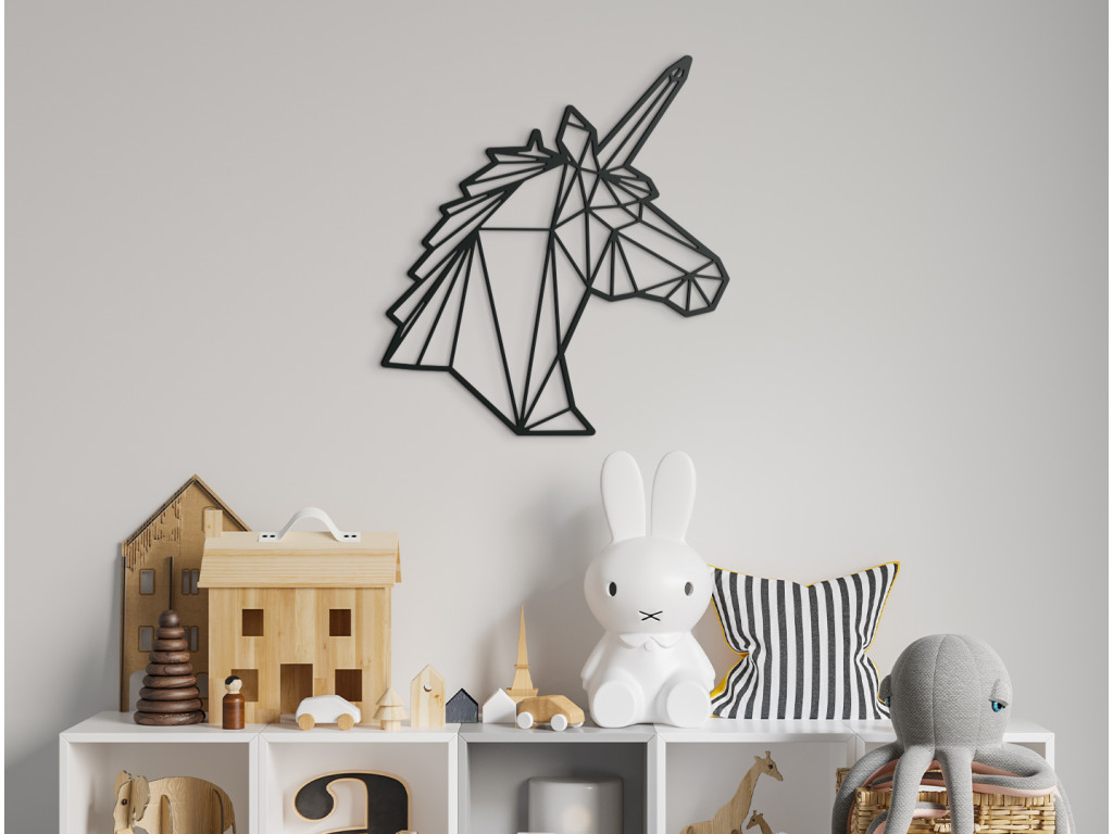 Detská dekorácia na stenu s motívom jednorožca v trendovom vyhotovení skrášli fádne steny, kdekoľvek sa ju rozhodnete umiestniť. Odporúčame ju najmä do dievčenských izieb. Oživí prázdne plochy nad detskou posteľou, komodou, gaučom či písacím stolíkom.