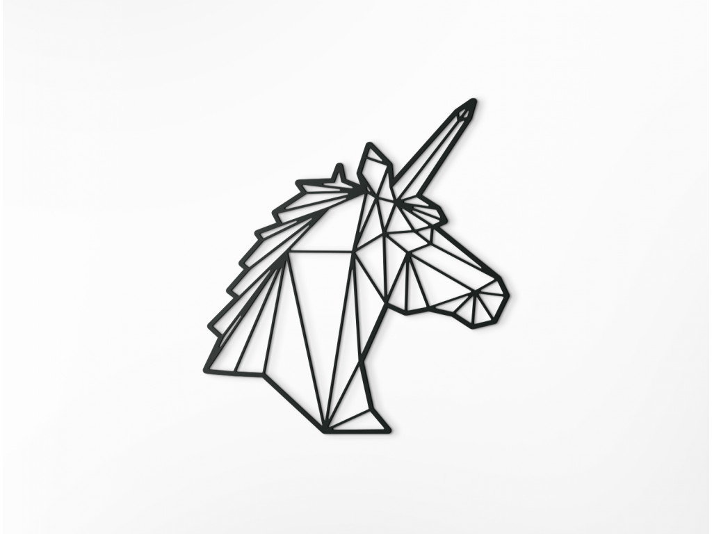 Drevená nálepka do detskej izby Polygonálny jednorožec