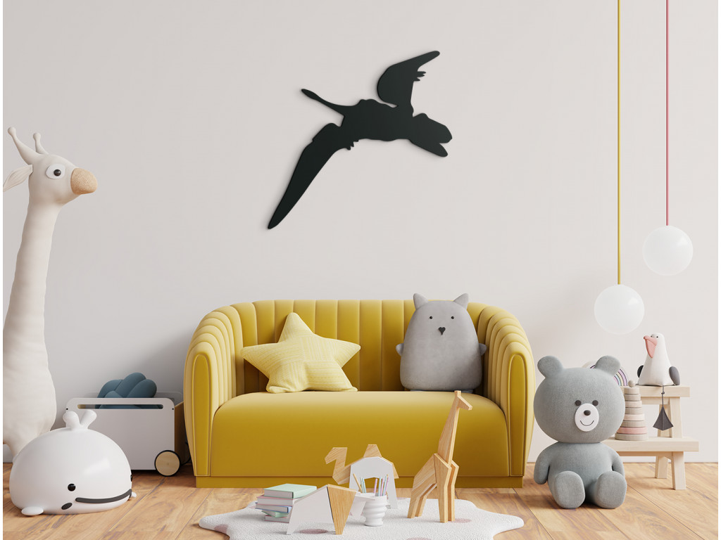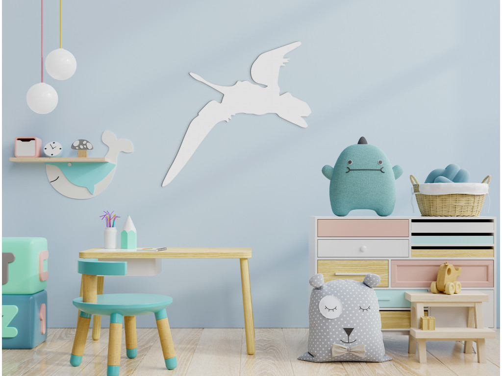 Roztomilý lietajúci Pterodactyl na stene detskej izby poteší chlapcov i dievčatká. Hravá dekorácia na stenu je ideálna pre milovníkov dinosaurov. Zútulní detskú izbu a deti získajú veselého kamaráta, ktorý bude bedlivo strážiť ich izbičku.