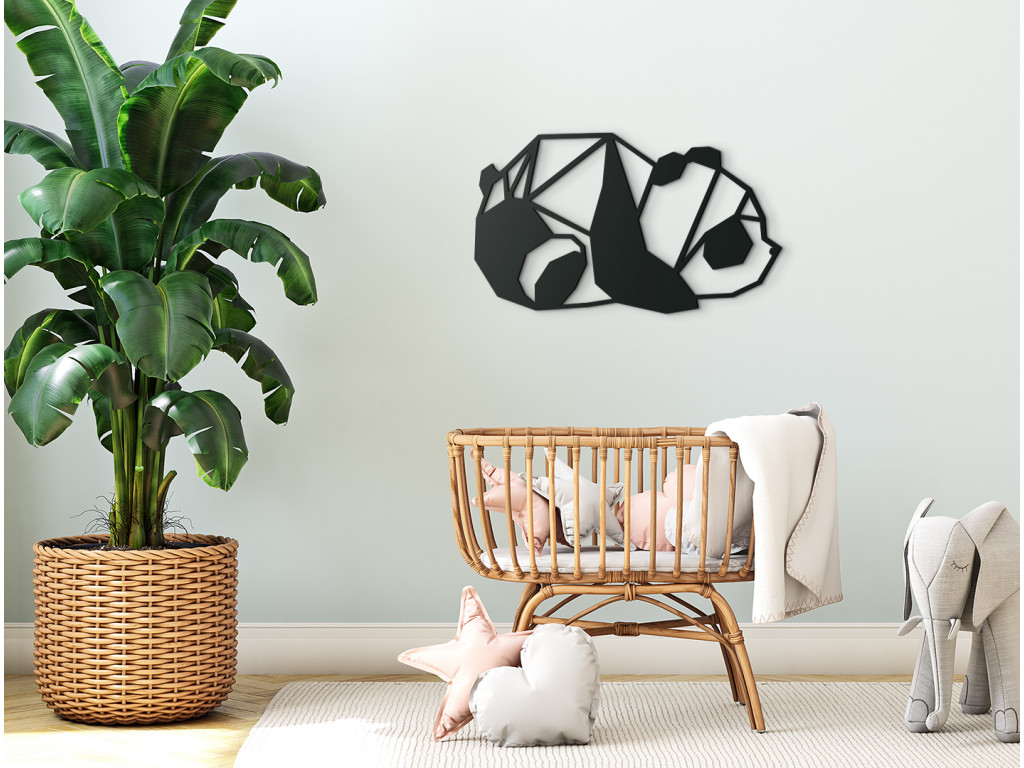 Roztomilý čínsky medvedík panda je vďačnou inšpiráciou pre mnohé detské hračky. Niet sa čomu čudovať, veď jeho zaujímavý čierno-biely kožuštek a bacuľaté, na pohľad ťarbavé telíčko si pozornosť určite zaslúži. Drevená nálepka na stenu Panda znázorňuje ležiace mláďa, pričom dizajn dekorácie je vyhotovený v modernom štýle.
