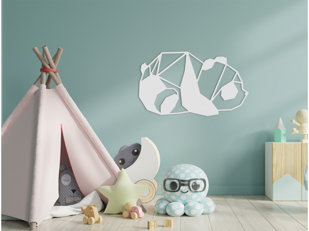Detská izba by mala mať hravú a príjemnú atmosféru a presne takú jej dodáva aj táto drevená nálepka na stenu. Vyrezávaná dekorácia ponúka pohľad na mláďa pandy v trendovom vyhotovení.