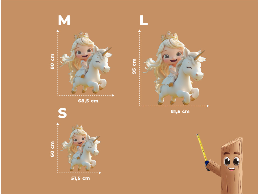 Zlatovláska s úsmevom cvála krajinou snov na svojom bielom jednorožcovi. Tento obrázok v sebe nesie radosť, kúzlo detstva a krásu rozprávky – ideálny doplnok pre dievčenskú izbu.