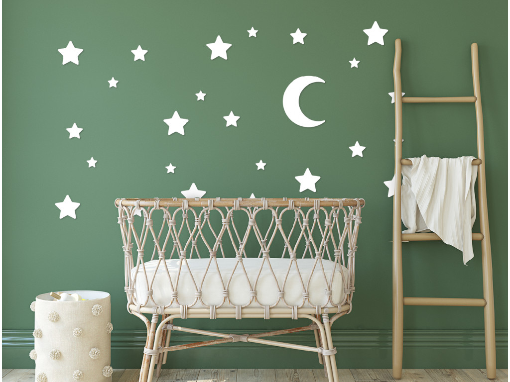 Vytvorte z detskej izby miesto, kde sa dieťa bude cítiť dobre. Zútulnite ju detskou sadou nálepiek s témou nočnej oblohy. Sada obsahuje hviezdičky a Mesiac. Za výhodnú cenu tak získate viacero nálepiek.