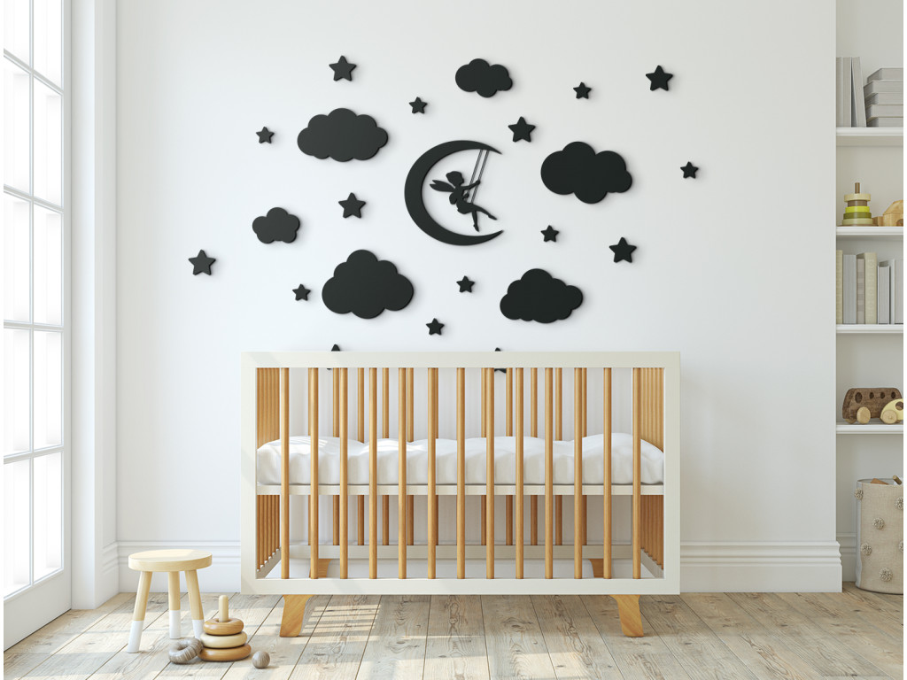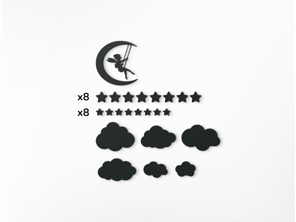 Detská izbička je miestom, kde dieťa bude tráviť najviac času. Zútulnite ju detskou sadou nálepiek s témou nočnej oblohy. Sada obsahuje hviezdičky, oblaky a Mesiac s hojdajúcou sa vílou. Za výhodnú cenu tak získate viacero nálepiek.