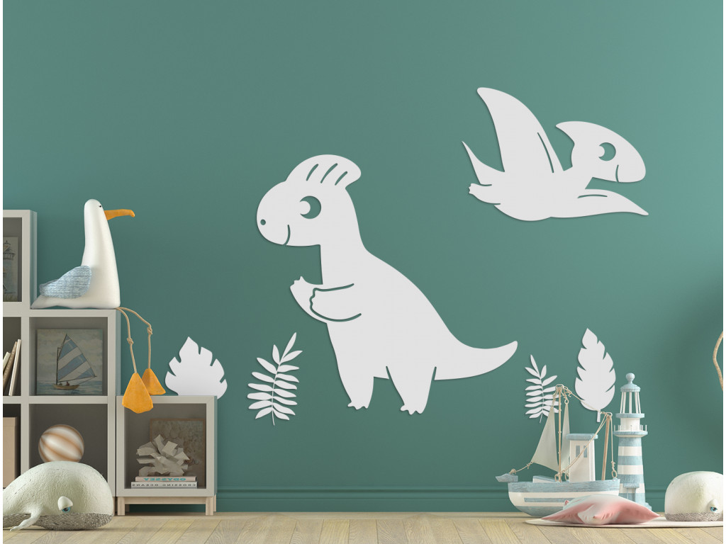 Vytvorte z detskej izby miesto, kde sa dieťa bude cítiť dobre. Zútulnite ju detskou sadou nálepiek s témou dinosaurov. Sada obsahuje 2 dinosaurov a rastliny. Za výhodnú cenu tak získate viacero nálepiek.