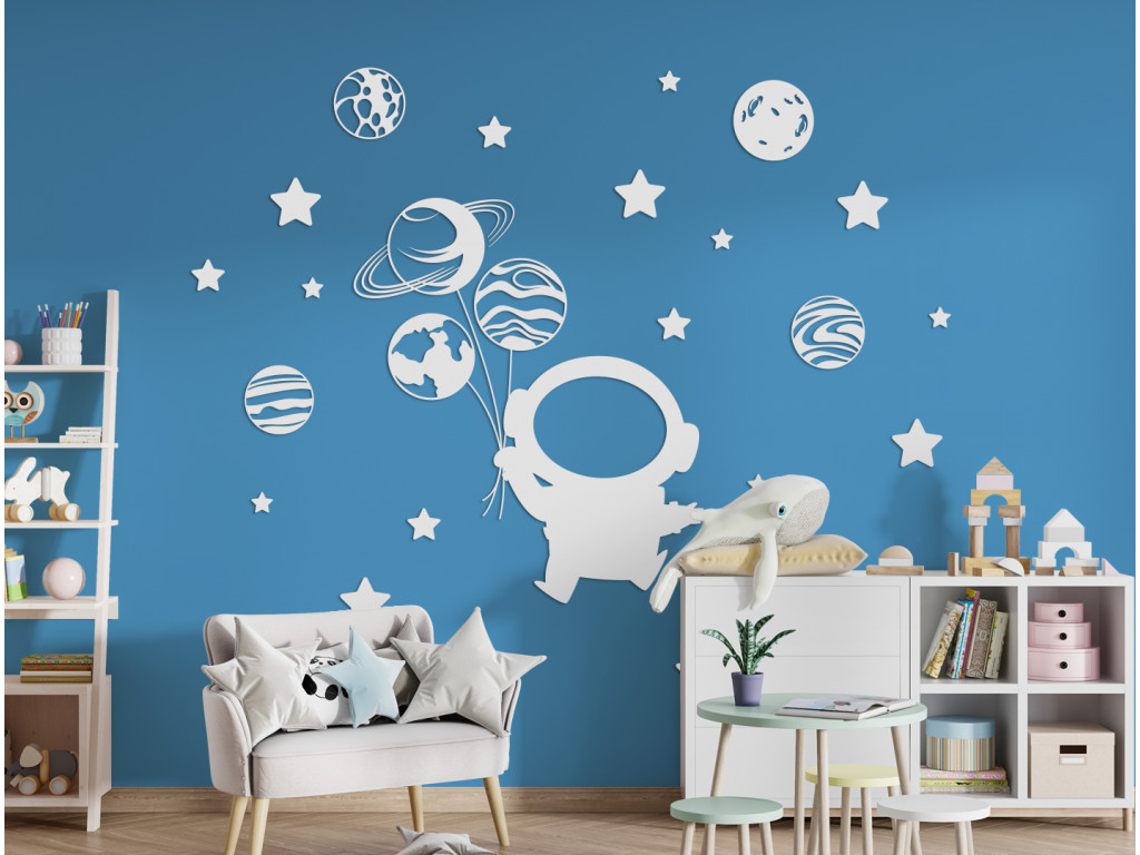 Vytvorte z detskej izby miesto, kde sa dieťa bude cítiť dobre. Zútulnite ju detskou sadou nálepiek s témou veľkolepého vesmíru. Sada obsahuje hviezdičky, kozmonauta a planéty. Za výhodnú cenu tak získate viacero nálepiek.