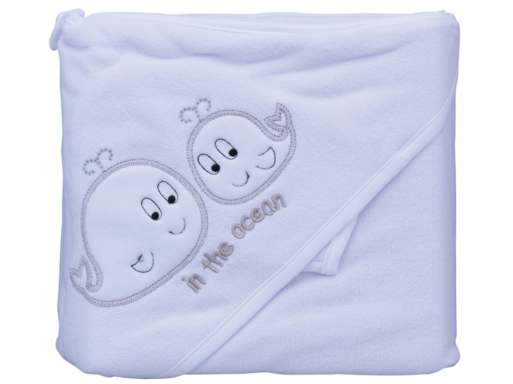 Biela osuška 100 x 100 cm s kapucňou veľryba