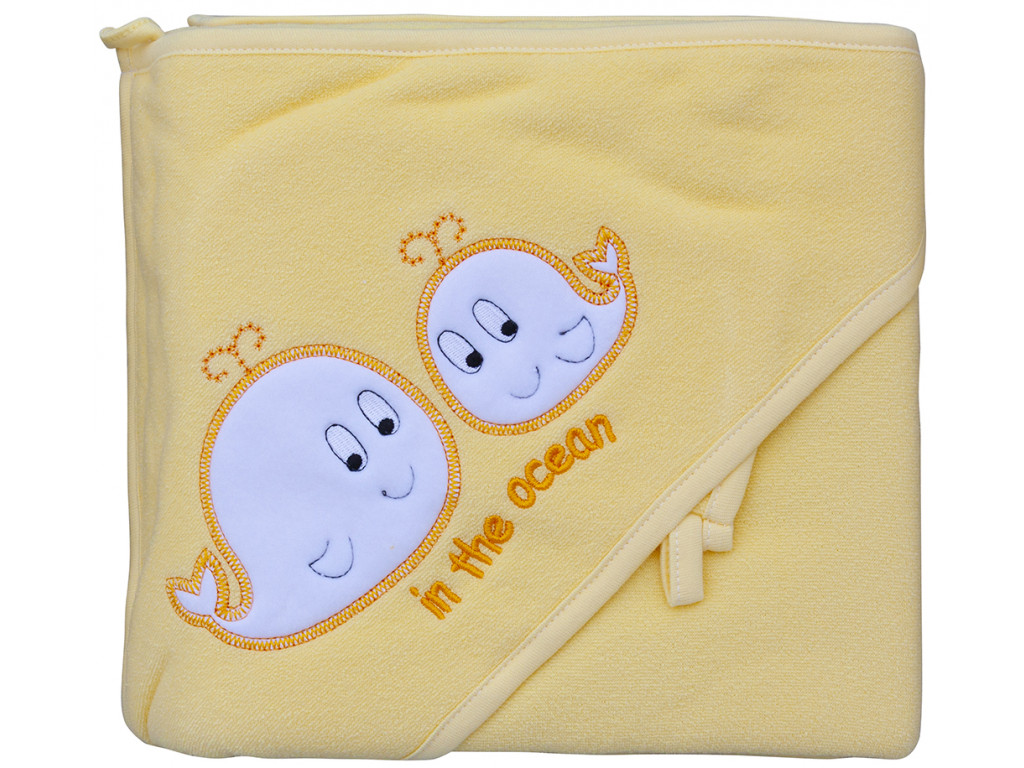 Žltá osuška 100 x 100 cm s kapucňou veľryba