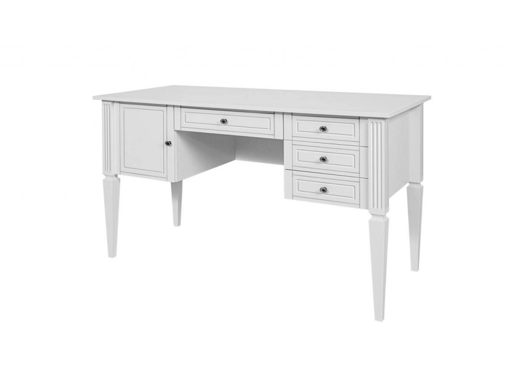 Biely pracovný stolík do detskej izby Ines zaujme nie len po dizajnovej, ale i funkčnej stránke. Písací stôl disponuje 4 zásuvkami a skrinkou, ktoré využijete na pracovné pomôcky a školské potreby. Biela farba rozjasní detskú izbu aj kanceláriu. Stolík so šírkou 132 cm poskytne dostatok priestoru na prípravu.
