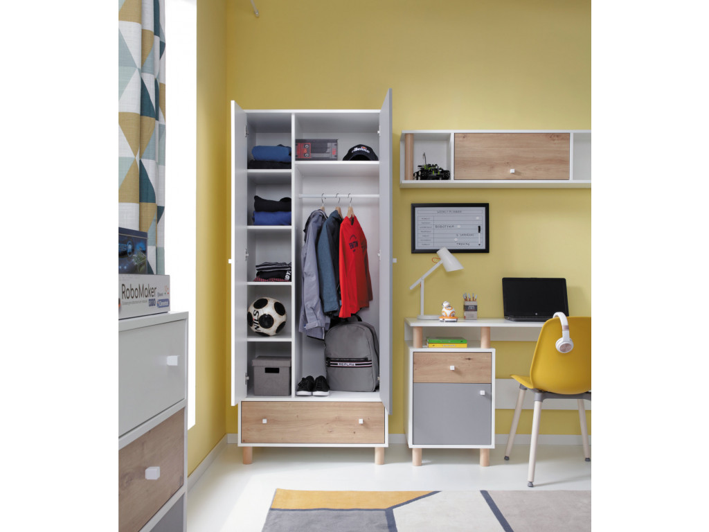 Detský písací stôl Faro z novej kolekcie sektorového nábytku osloví dizajnom, primeranou pracovnou plochou i úložným priestorom. Aby neostalo iba pri slovách, písací stôl disponuje zásuvkou, uzavretou skrinkou s poličkami i otvoreným odkladacím priestorom pod pracovnou doskou stola. Pracovná doska stola poskytne dostatok miesta na písanie domácich úloh alebo na umiestnenie počítača či notebooku.