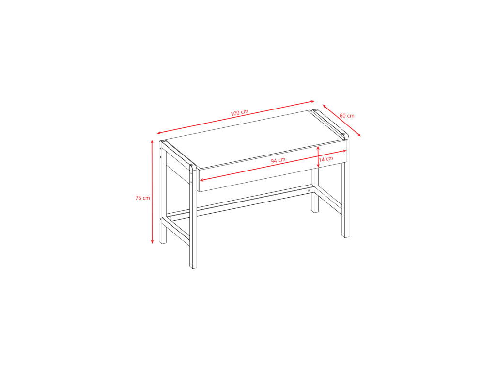 Detský písací stôl je priestranný a univerzálny, vďaka čomu sa ľahko prispôsobuje meniacim sa potrebám detí. Písací stôl okrem svojej priestrannej písacej plochy disponuje aj vstavanou zásuvkou.