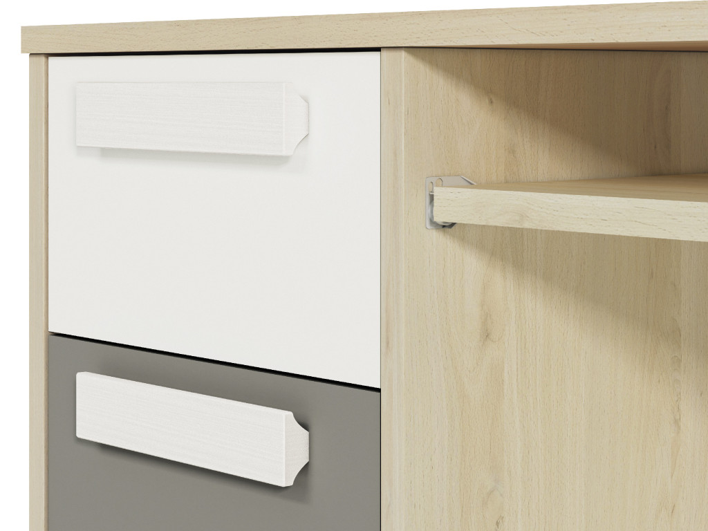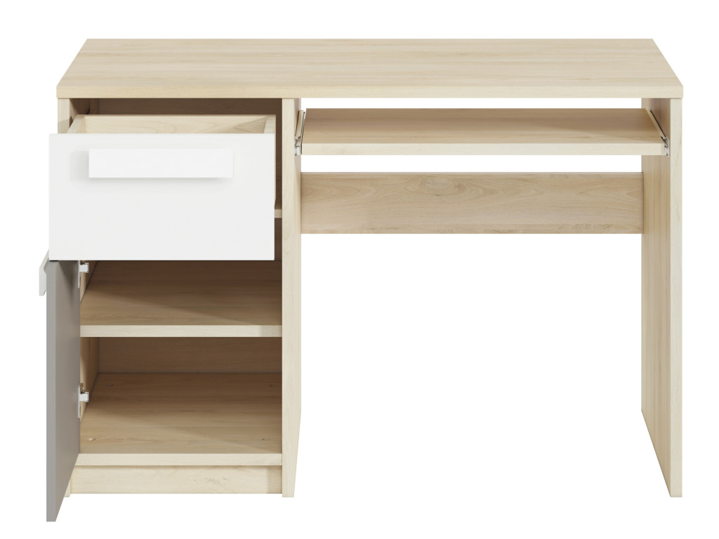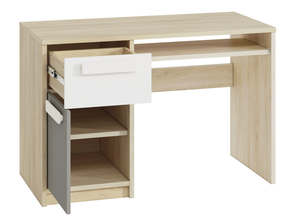 Poskytnite svojmu dieťaťu praktické miesto na učenie a zábavu s detským písacím stolíkom Drop 1401. Tento stolík je navrhnutý s dôrazom na funkčnosť – úložný priestor s jednou zásuvkou a skrinkou je umiestnený na ľavej strane, čo umožňuje pohodlné uloženie školských potrieb a drobností. Pod hlavnou doskou sa nachádza výsuv na klávesnicu, ktorý šetrí miesto na pracovnej ploche a zároveň udržiava všetko potrebné v dosahu. Ideálne riešenie pre detskú či študentskú izbu, kde sa spája štýl s praktickosťou.