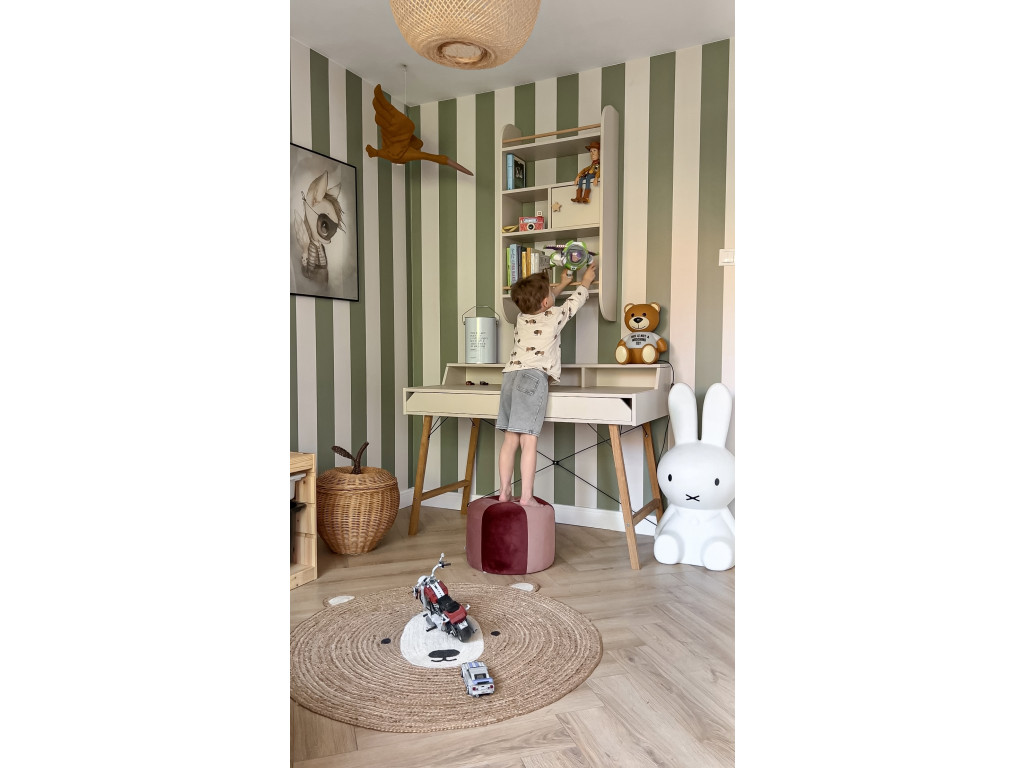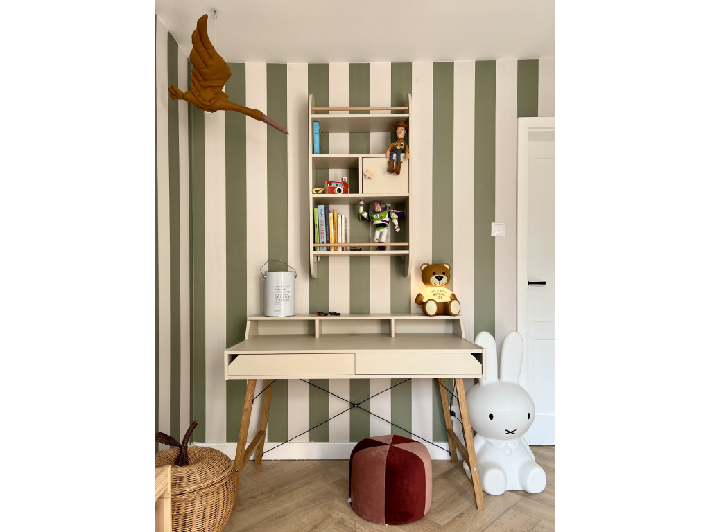 Je vyrobený v béžovej farbe z laminovanej dosky. Je to skvelé riešenie pre usporiadanie malého kancelárskeho alebo školského vybavenia, ako sú monitory, notebooky, perá či smartfóny, čo pomáha udržiavať pracovný priestor čistý, prehľadnejší, usporiadaný a efektívnejší. Hodí sa k béžovému modelu písacieho stola z kolekcie Lotta, čo zaisťuje všestranné využitie.