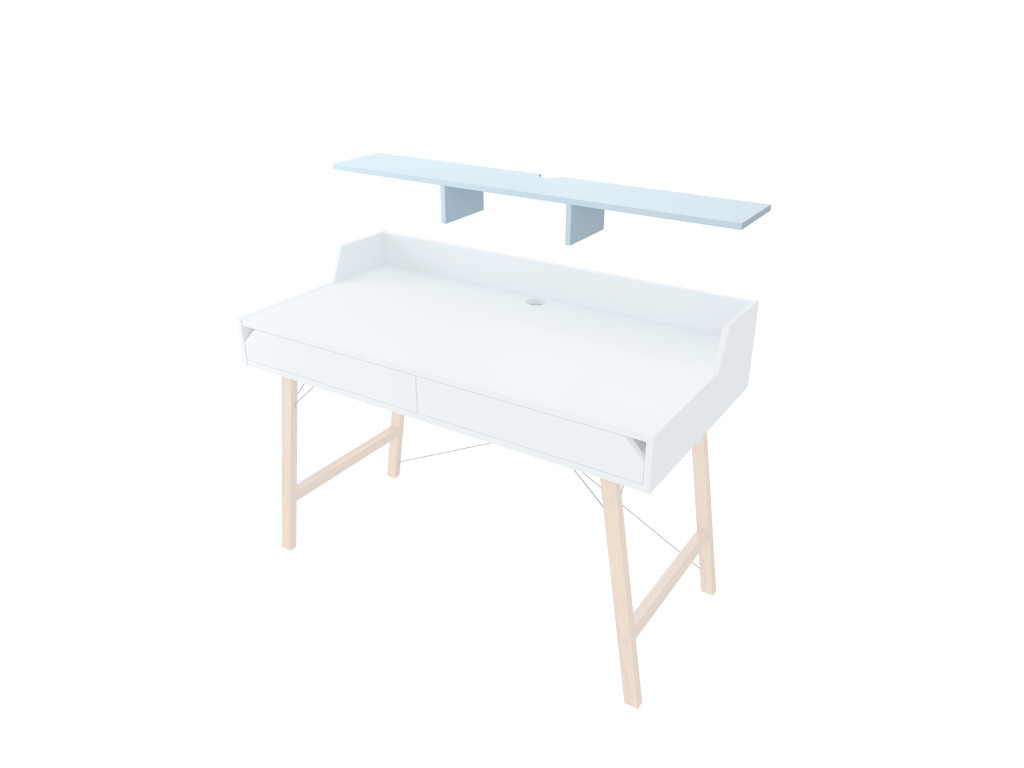 Je vyrobený v modrej farbe z laminovanej dosky. Je to skvelé riešenie pre usporiadanie malého kancelárskeho alebo školského vybavenia, ako sú monitory, notebooky, perá či smartfóny, čo pomáha udržiavať pracovný priestor čistý, prehľadnejší, usporiadaný a efektívnejší. Hodí sa k modrému modelu písacieho stola z kolekcie Lotta, čo zaisťuje všestranné využitie.