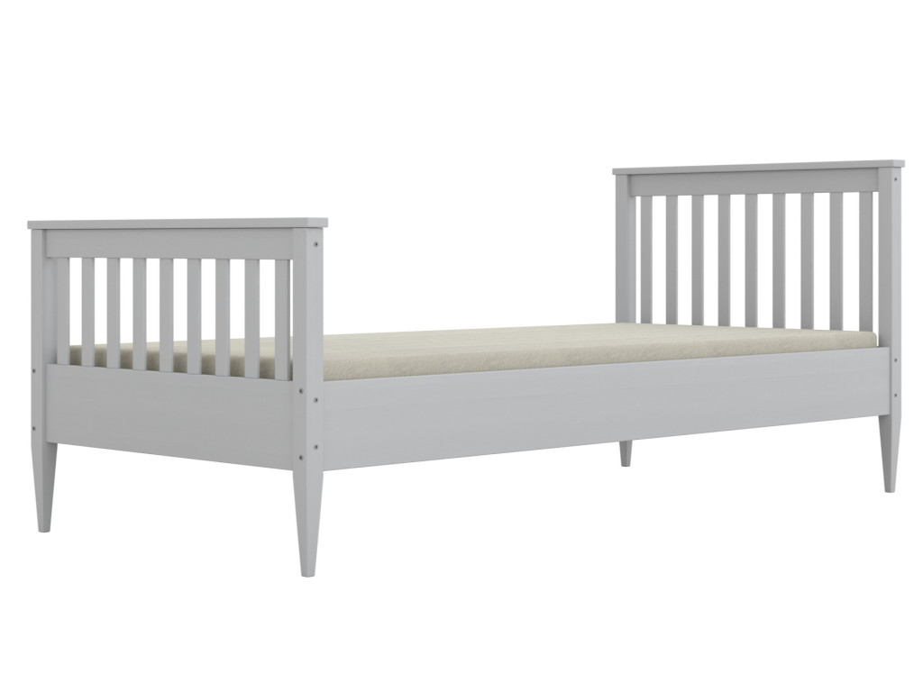 Rám postele je vyrobený z masívneho borovicového dreva, ktoré zaručuje dlhú životnosť a bezpečné používanie. Nohy s prierezom 45 × 45 mm poskytujú stabilitu a istotu pri každodennom používaní, zatiaľ čo lamely s hrúbkou 20 mm zvyšujú pevnosť celej konštrukcie.