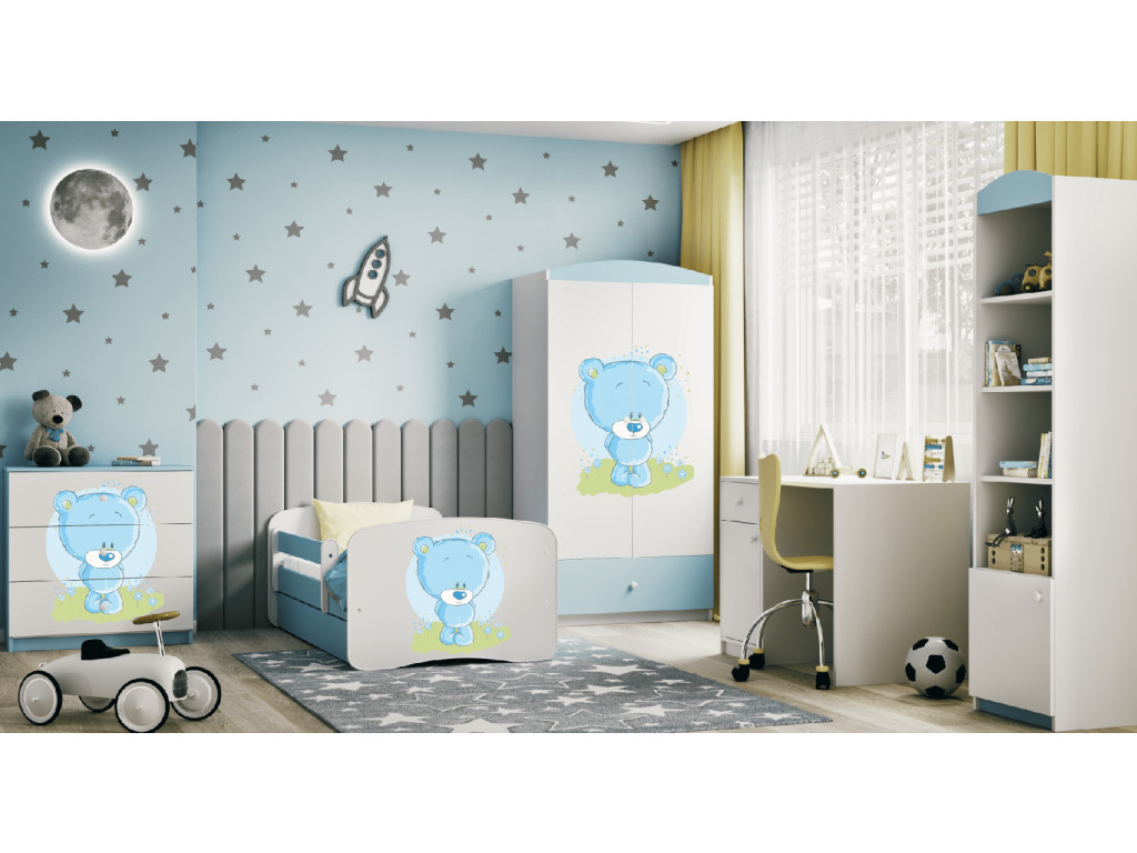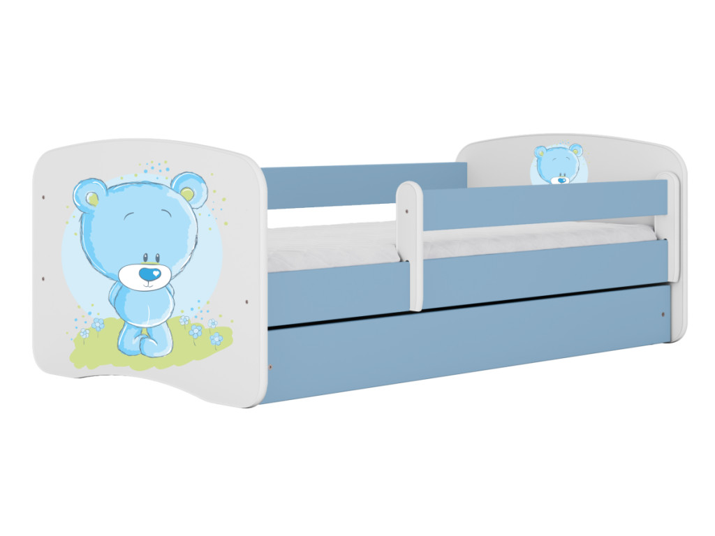 Detská posteľ Macko (modrá) je dokonalým spojením funkčnosti a dizajnu, ideálnym pre chlapčenskú izbu. Spodná zásuvka poskytuje praktický úložný priestor na hračky alebo oblečenie, zatiaľ čo odnímateľná zábrana zabezpečuje bezpečný spánok. Modrý motív Macka pridáva hravý nádych a obojstranné prevedenie zaisťuje flexibilitu pri usporiadaní izby.