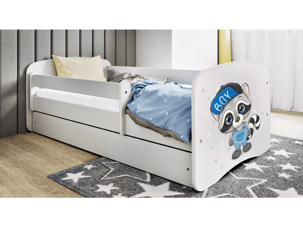 Detská posteľ, nie len, že dobre vyzerá, ale plní aj svoju praktickú časť. Detskú posteľ si môžete vybrať so spodnou zásuvkou, ktorá má v sebe veľa úložného priestoru. Ďalšou výhodou je ochranné zábradlie, ktoré môžete nasadiť na noc, ale počas hrania môžete znova zložiť. Posteľ je obojstranná, čo vám umožní posteľ zložiť podľa vašich predstav alebo usporiadania detskej izby.