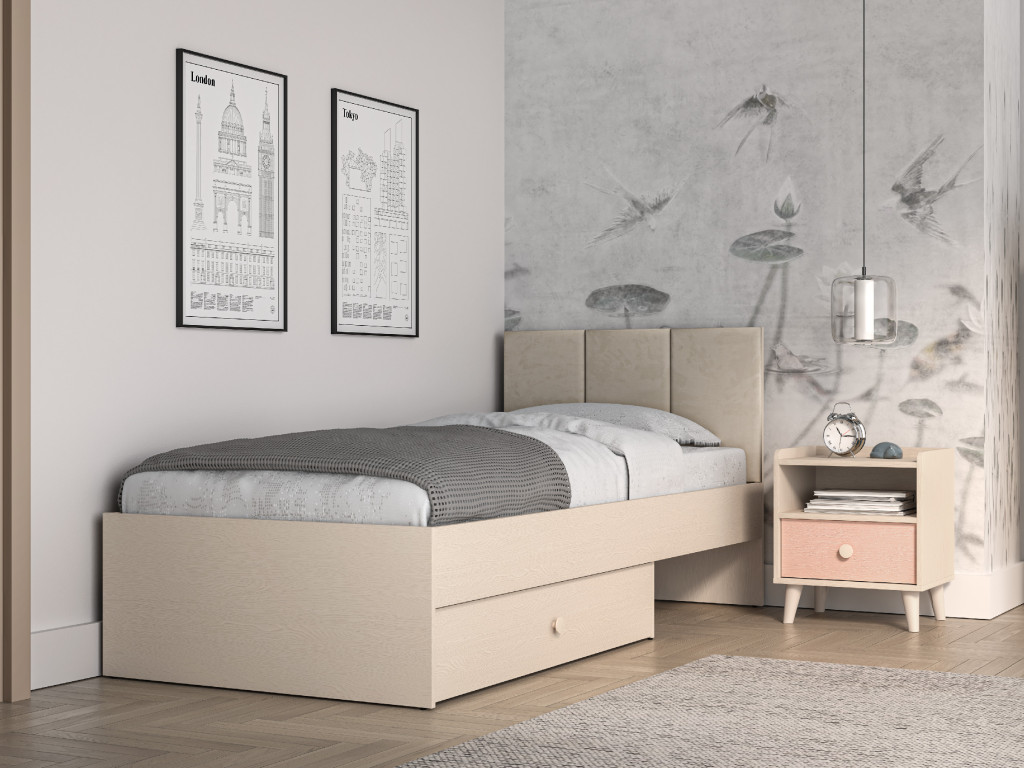 Detská posteľ Mevel 08 s rozmermi 90 x 200 cm z kolekcie Mevel, ponúka ideálne miesto na zdravý spánok aj odpočinok počas dňa. Jemná kombinácia béžovej a farby s príjemným velúrovým čelom postele, dokáže skrášliť každú detskú izbu. Stabilná konštrukcia a kvalitné materiály zaručujú dlhú životnosť a bezpečné používanie.