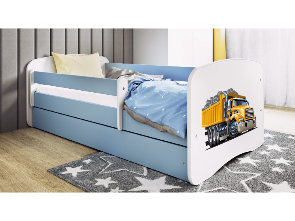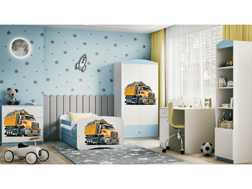 Detská posteľ so zábranou Nákladiak (modrá) je ideálnym riešením pre chlapčenskú izbu, ktoré spája funkčnosť s hravým dizajnom. Priestranná spodná zásuvka ponúka úložný priestor na oblečenie, hračky alebo posteľnú bielizeň, zatiaľ čo odnímateľná zábrana zaručuje bezpečnosť počas spánku. Vďaka obojstrannému prevedeniu a zaobleným hranám je posteľ flexibilná, praktická a bezpečná pre každé dieťa.