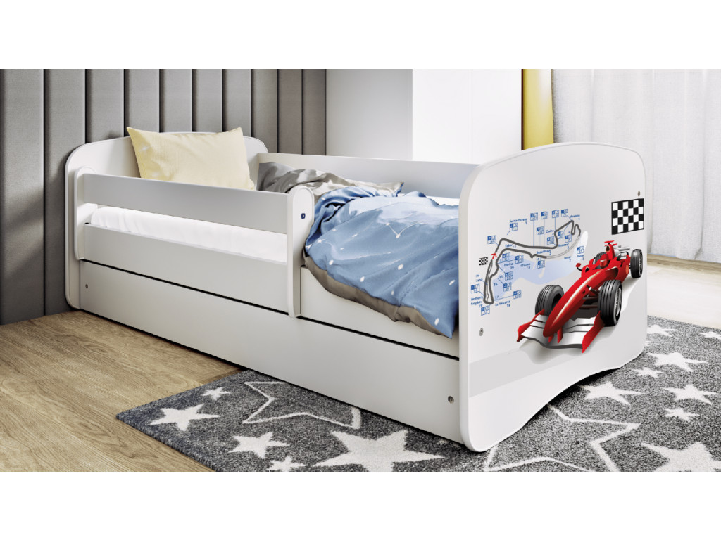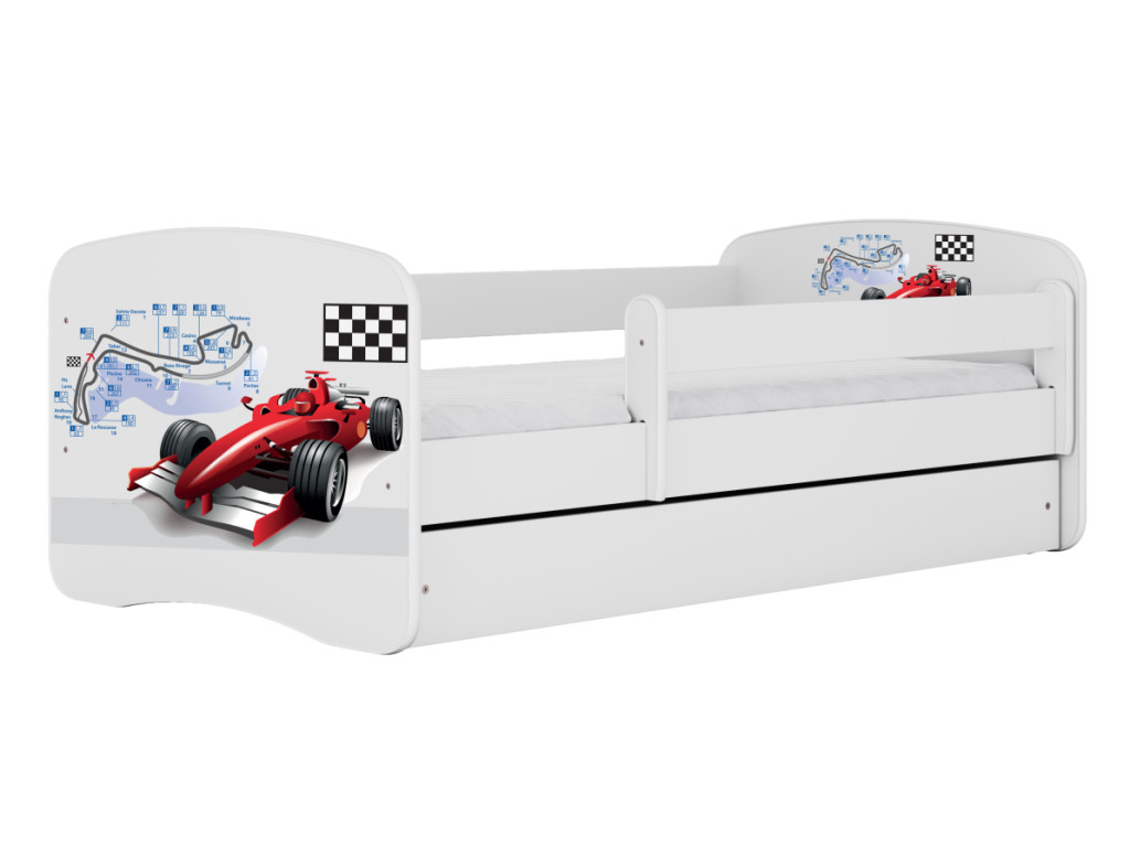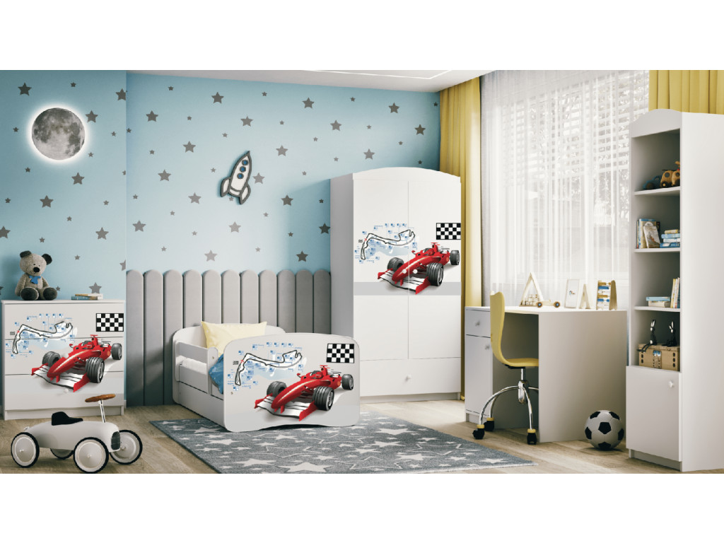 Detská posteľ so zábranou Formula (biela) je ideálnou voľbou pre malých fanúšikov rýchlych áut, ktorá kombinuje štýl, bezpečnosť a funkčnosť. Obojstranná konštrukcia umožňuje jednoduché prispôsobenie usporiadania izby, zatiaľ čo odnímateľná zábrana poskytuje bezpečie počas spánku a flexibilitu pri hre. Priestranná dvojdielna zásuvka ponúka dostatok miesta na uloženie hračiek či posteľnej bielizne, čo robí túto posteľ praktickým riešením pre každý detský priestor. Detskú posteľ so zábranou môžete skombinovať aj s inými kusmi nábytku z kolekcie Babydreams.