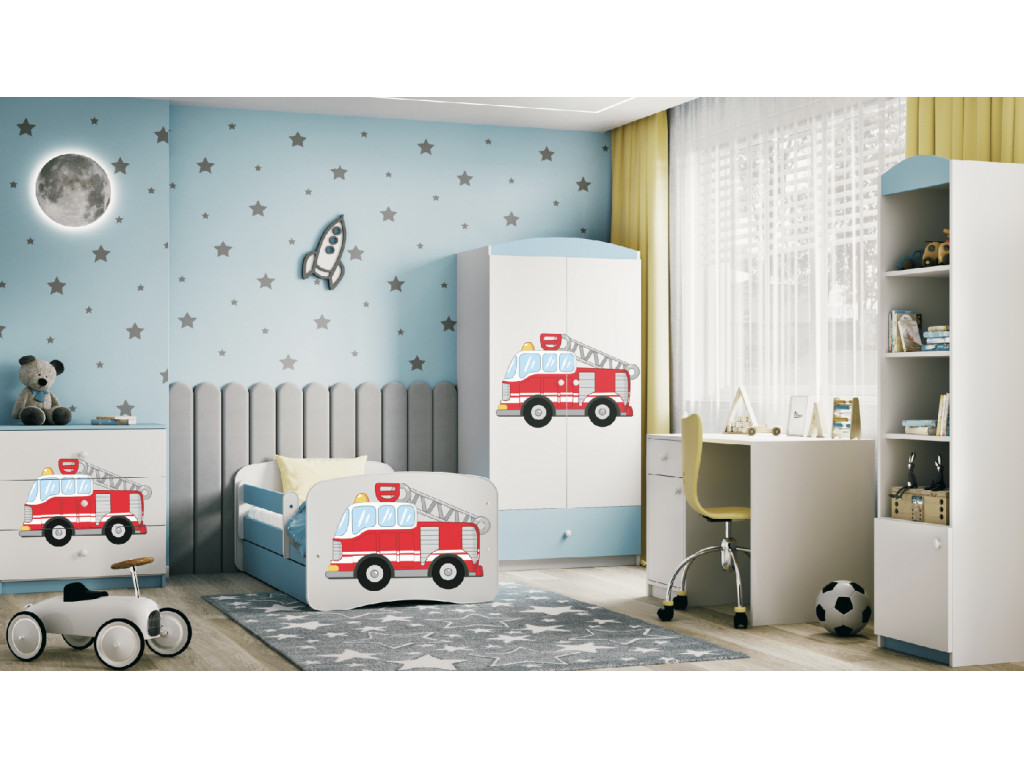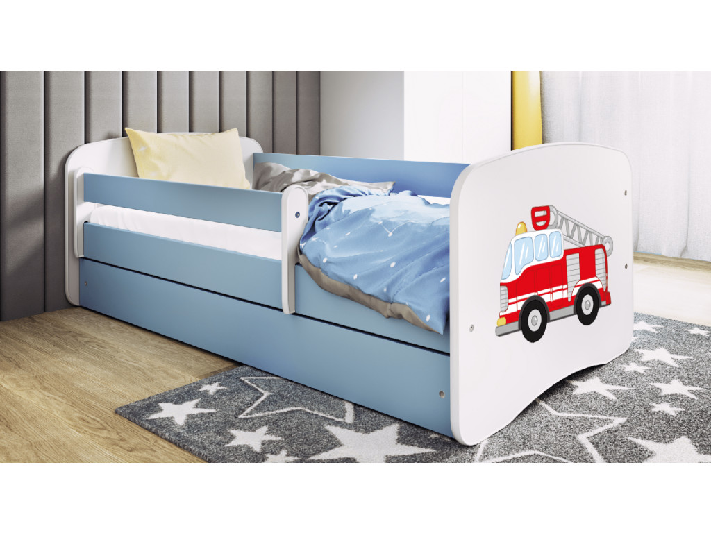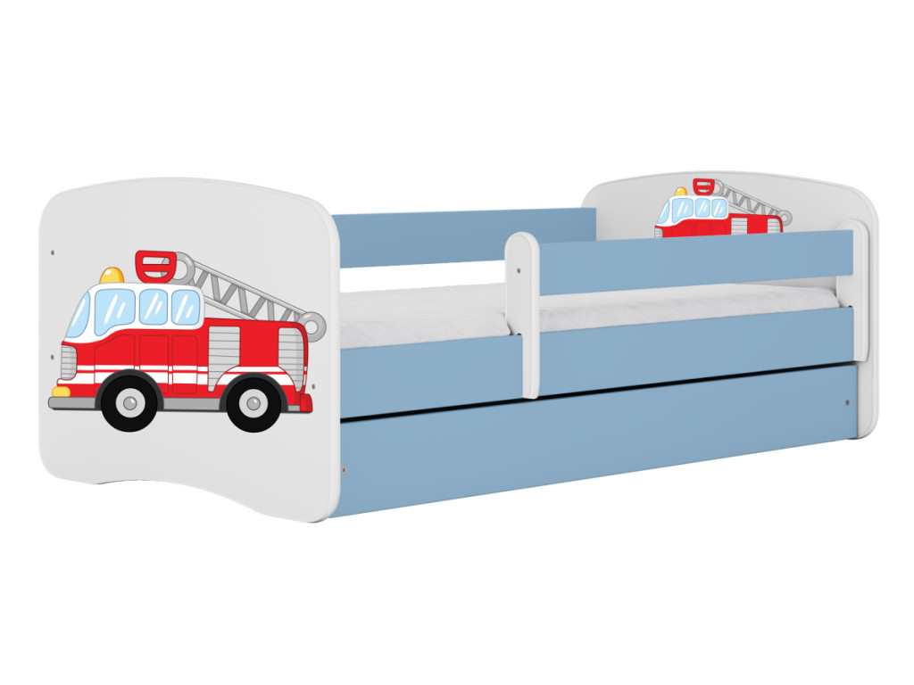 Detská posteľ so zábranou Hasičské auto (modrá)