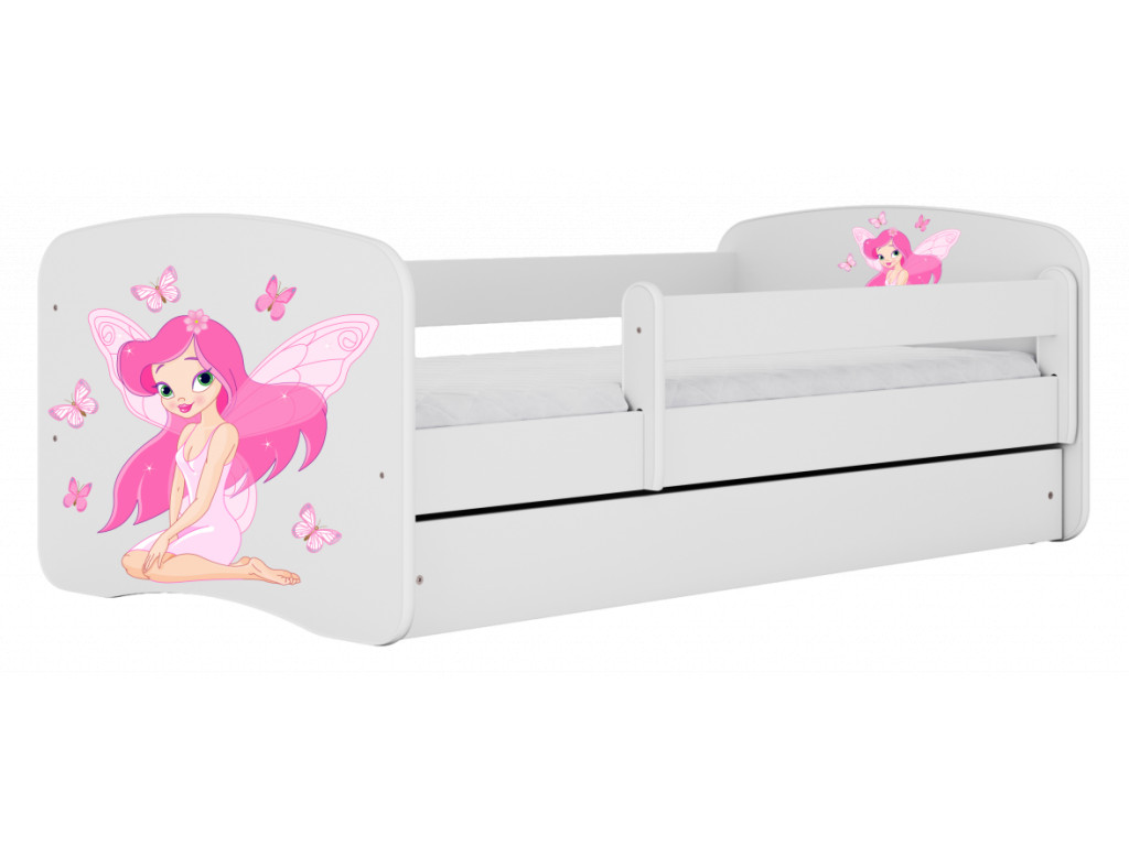 Detská posteľ so zábranou Víla a motýle (biela) z kolekcie Babydreams je dokonalým spojením rozprávkového dizajnu a funkčnosti. Priestranná zásuvka ponúka praktický úložný priestor, zatiaľ čo odnímateľná zábrana zaručuje bezpečnosť počas spánku. Jemný motív víl a motýľov spolu s kvalitným spracovaním tejto postele oživí každú detskú izbu a dodá jej kúzlo.