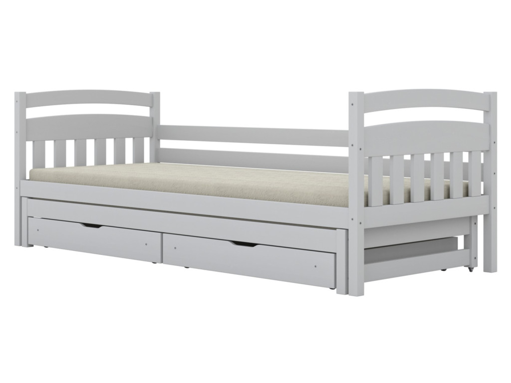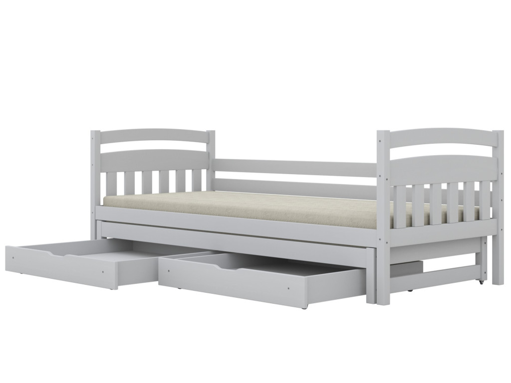 Zásuvky sa vysúvajú ľahko, vďaka kolieskam, a sú ideálne na každodenné používanie. - S prístelkou (výsuvné lôžko) - Tento variant je vybavený výsuvným druhým lôžkom, ktoré poskytne dodatočné miesto na spanie – perfektné pre súrodenca, kamarátov alebo návštevy. Po zasunutí prístelky zostáva posteľ kompaktná a nezaberá viac miesta.