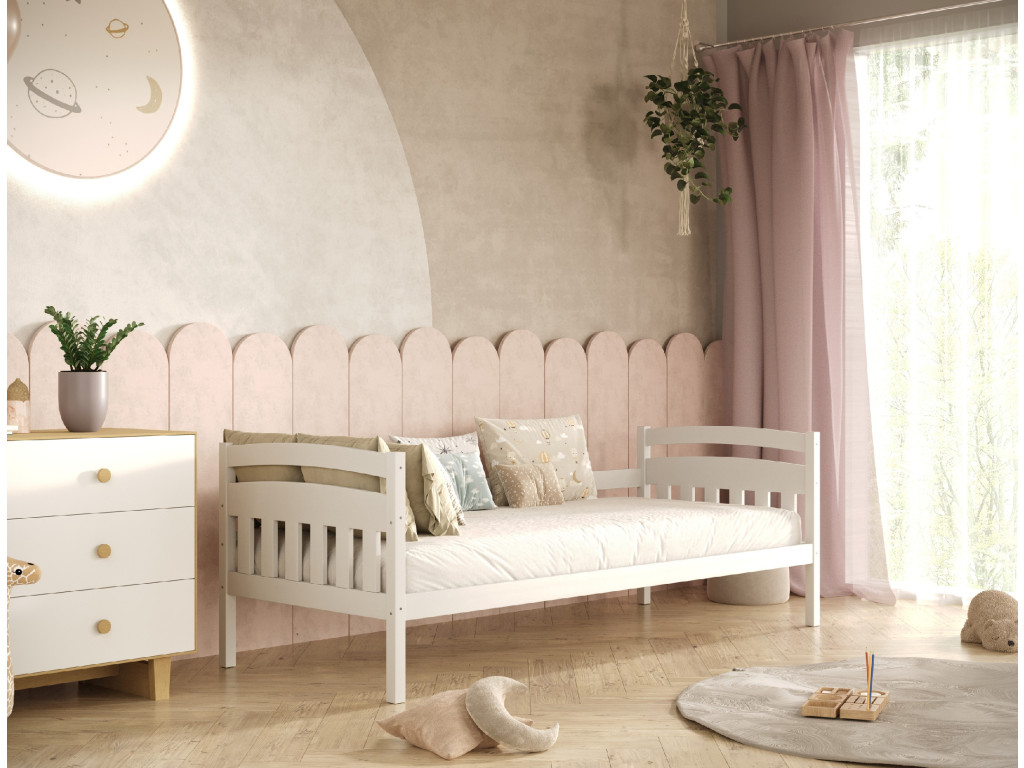 Biela verzia postele Tosia prinesie do detskej izby čistotu, svetlosť a pocit priestoru. Jej nadčasový dizajn krásne ladí s farebnými doplnkami a ľahko sa prispôsobí meniacemu sa štýlu interiéru. Vďaka konštrukcii z masívneho borovicového dreva a roštu typu FLEX je nielen estetická, ale aj stabilná a pohodlná. Ideálna voľba pre tých, ktorí hľadajú kombináciu jednoduchosti, kvality a jemnej elegancie.