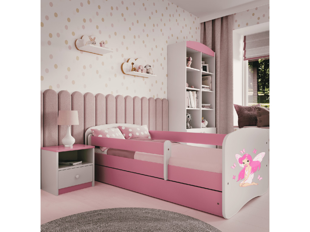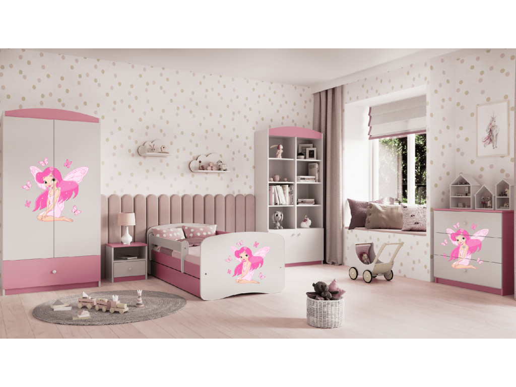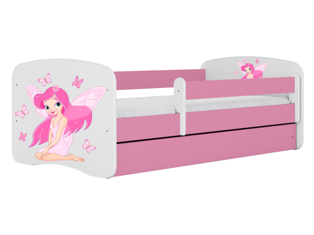 Detská posteľ so zábranou Víla a motýle (ružová) z kolekcie Babydreams je ideálnym riešením pre malú princeznú, ktorá túži po čarovnej izbe. Spodná zásuvka ponúka dostatok priestoru na hračky alebo oblečenie, zatiaľ čo odnímateľná zábrana zaistí pokojný a bezpečný spánok. Bielo-ružový dizajn s motívom víl a motýľov dodá detskej izbe jemnosť a štýl.