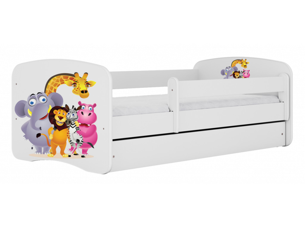 Detská posteľ ZOO (biela) prináša hravý dizajn, ktorý osloví každé dieťa, spolu s praktickými funkciami. Spodná zásuvka poskytuje dostatok úložného priestoru na hračky či oblečenie, zatiaľ čo odnímateľná zábrana ponúka bezpečnosť počas spánku. Obojstranné prevedenie a zaoblené hrany s gumovými ochrannými profilmi zaručujú flexibilitu a bezpečnosť vo vašej detskej izbe. Detskú posteľ so zábranou môžete skombinovať aj s inými kusmi nábytku z kolekcie Babydreams.