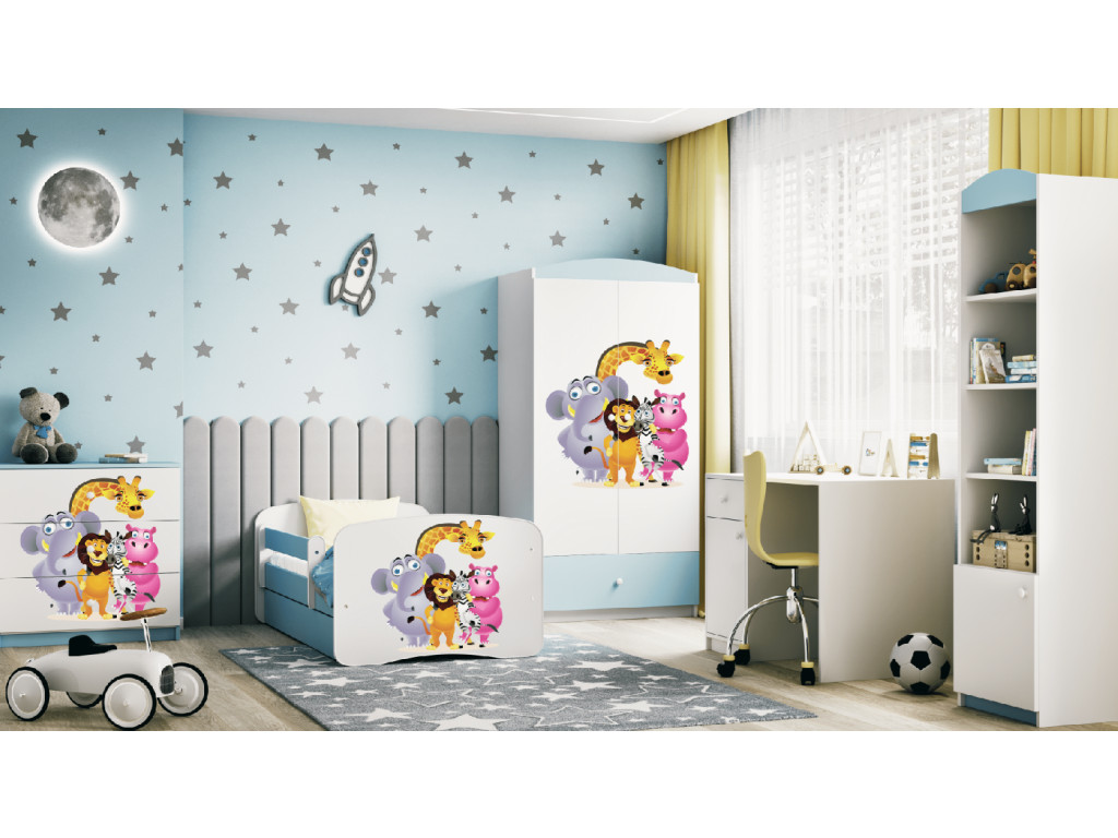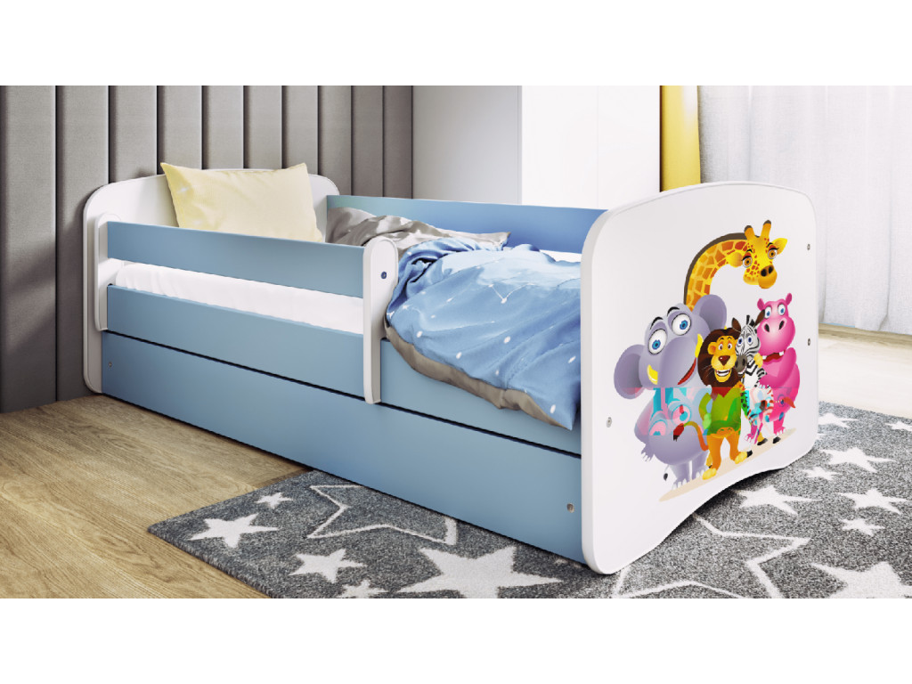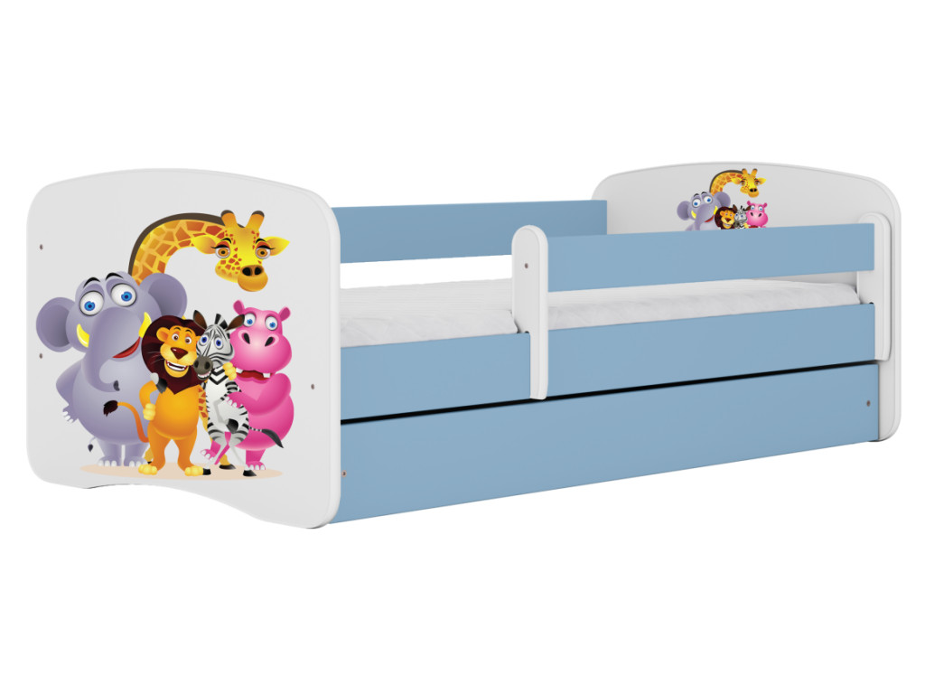 Detská posteľ ZOO (modrá) je skvelým doplnkom do detskej izby malého objaviteľa, ktorý miluje zvieratá. Priestranná spodná zásuvka zabezpečí miesto na hračky a oblečenie, zatiaľ čo odnímateľná zábrana garantuje pokojný spánok. Obojstranné prevedenie a bezpečné zaoblené hrany s gumovými profilmi robia túto posteľ ideálnou kombináciou štýlu a praktickosti. Detskú posteľ so zábranou môžete skombinovať aj s inými kusmi nábytku z kolekcie Babydreams.