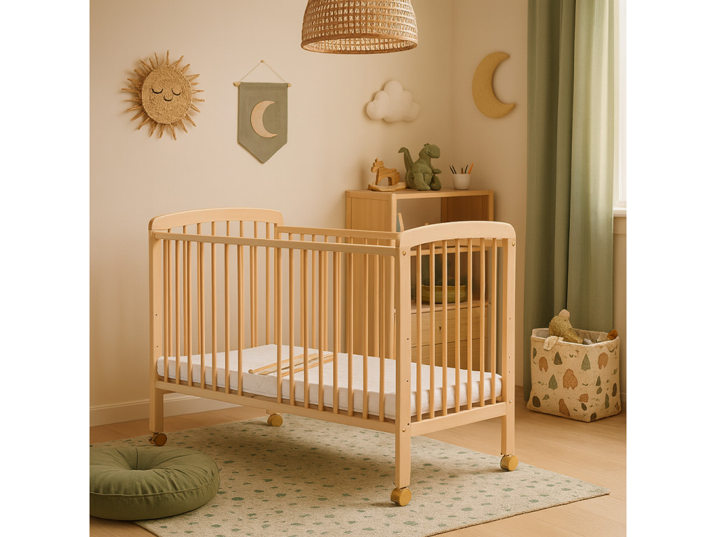 Detská drevená postieľka je vyrobená z kvalitného bukového masívu bez povrchovej úpravy. Má klasický tvar s mierne vyvýšenými čelami s možnosťou vyberania priečok. Je bezpečná i stabilná a zaručuje bezpečný spánok pre deti do 3 rokov.