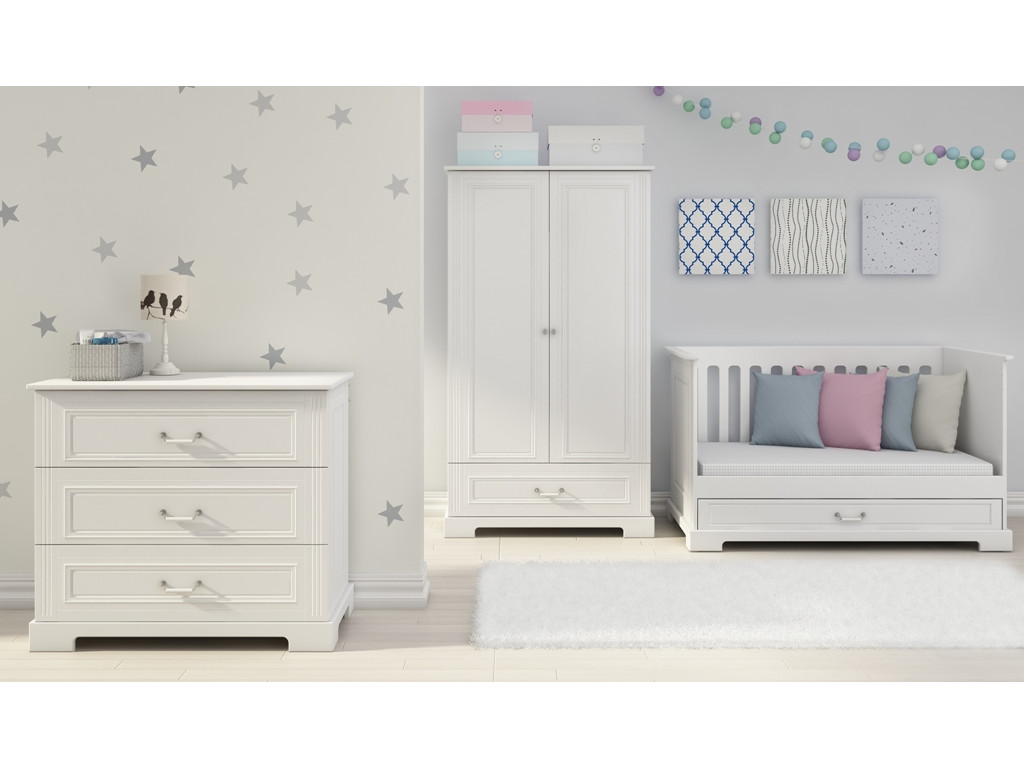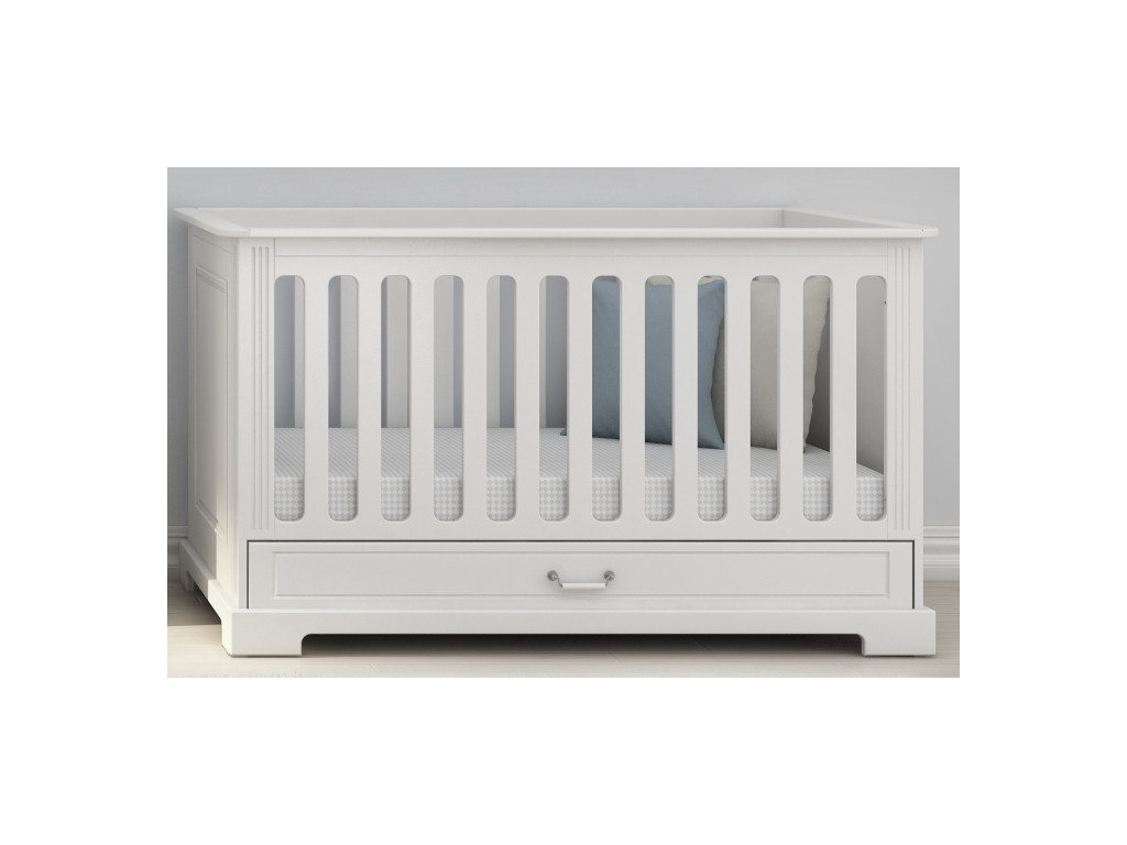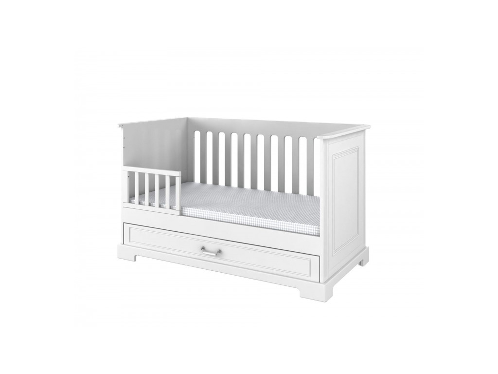 Elegantná postieľka s príťažlivým dizajnom. Detská postieľka Ines so zásuvkou je bezpečná po všetkých stránkach. Zdravotne neškodné farby, nastaviteľná výška matraca. Dá sa prestavať na posteľ!