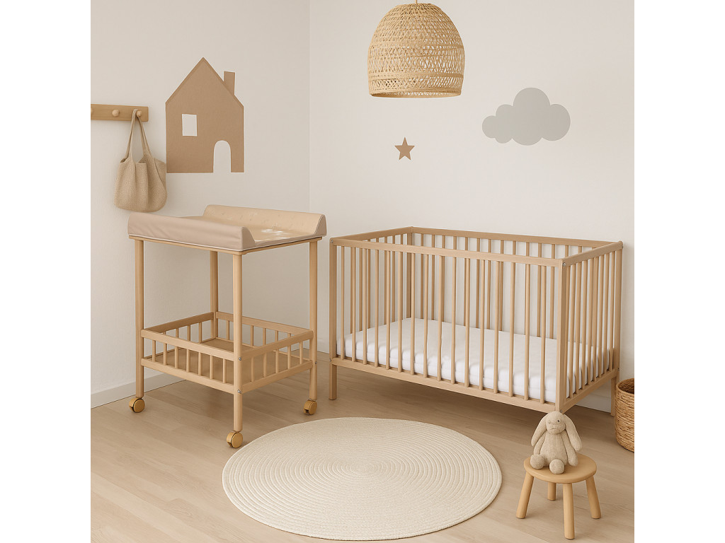 Postieľka pre deti je vyrobená z bukového dreva bez povrchovej úpravy, podľa platných noriem EÚ na výrobky pre deti do 3 rokov.