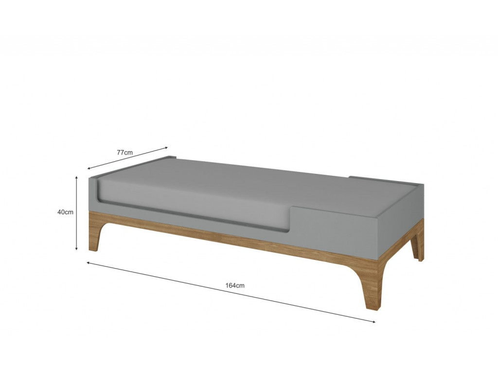 - čelo zásuvky, skrinka, lamely a rámy postele sú vyrobené z MDF dosky so sivým, pre deti bezpečným náterom (odtieň NCS S 3500-N),