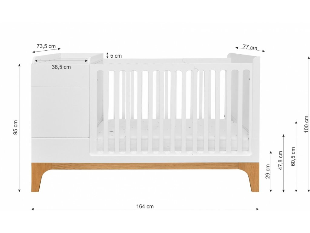 - tri výškové úrovne polohy matraca prispôsobené vývoju dieťaťa (umiestnenie 29 / 47,8 / 60,5 cm od podlahy),