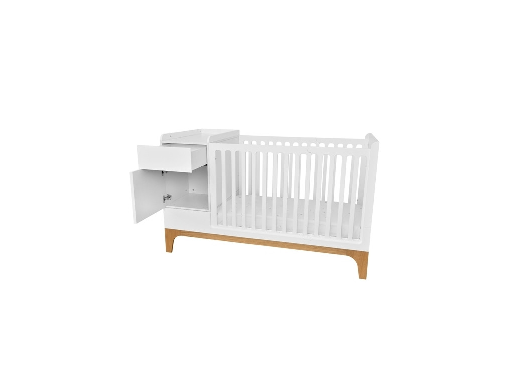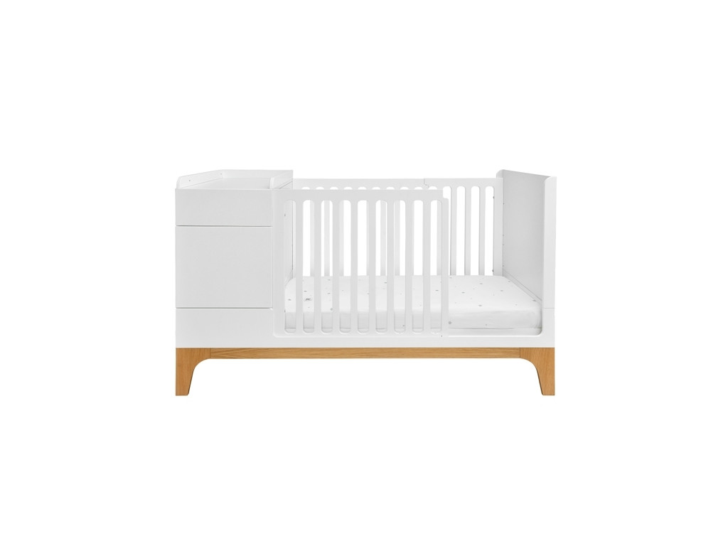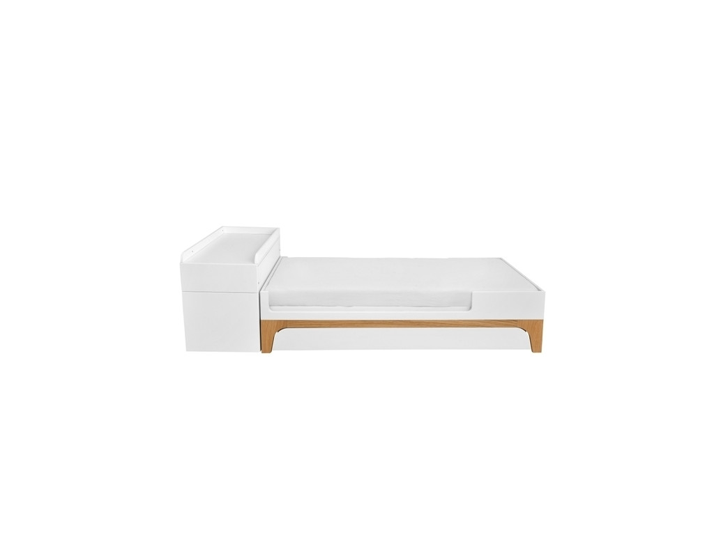 Vďaka možným zmenám je detská postieľka UP! skvelým riešením pre rodičov i deti, ktoré sa môžu tešiť z pekného a funkčného nábytku mnoho rokov. Detská postieľka UP! je vyrobená z MDF dosky, dubovej dyhy a nábytkovej dosky. Dodáva sa v bielej farbe v kombinácii s nožičkami v odtieni duba.
